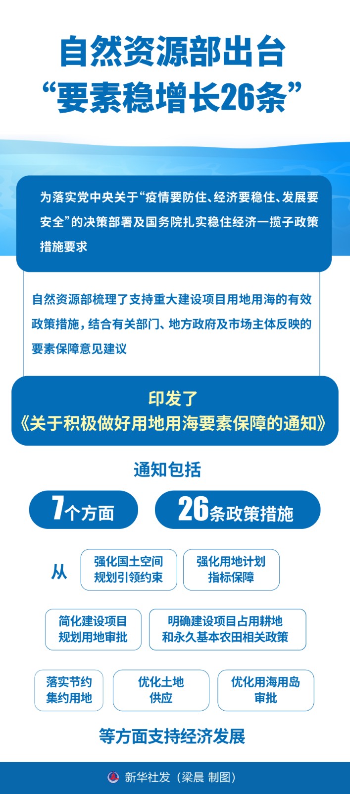 新華社記者8月8日在自然資源部新聞通氣會上獲悉,為落實黨中央關(guān)于“疫情要防住、經(jīng)濟(jì)要穩(wěn)住、發(fā)展要安全”的決策部署及國務(wù)院扎實穩(wěn)住經(jīng)濟(jì)一攬子政策措施要求,自然資源部梳理了支持重大建設(shè)項目用地用海的有效政策措施,結(jié)合有關(guān)部門、地方政府及市場主體反映的要素保障意見建議,印發(fā)了《關(guān)于積極做好用地用海要素保障的通知》,通知包括7個方面26條政策措施,從強(qiáng)化國土空間規(guī)劃引領(lǐng)約束、強(qiáng)化用地計劃指標(biāo)保障、簡化建設(shè)項目規(guī)劃用地審批、明確建設(shè)項目占用耕地和永久基本農(nóng)田相關(guān)政策、落實節(jié)約集約用地、優(yōu)化土地供應(yīng)、優(yōu)化用海用島審批等方面支持經(jīng)濟(jì)發(fā)展。