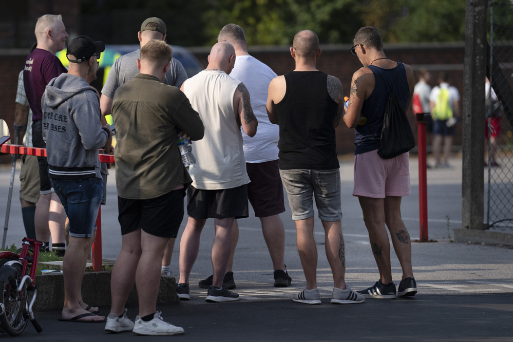 8月14日,人們在英國曼徹斯特一處猴痘疫苗接種點(diǎn)外排隊(duì)等待接種疫苗。
