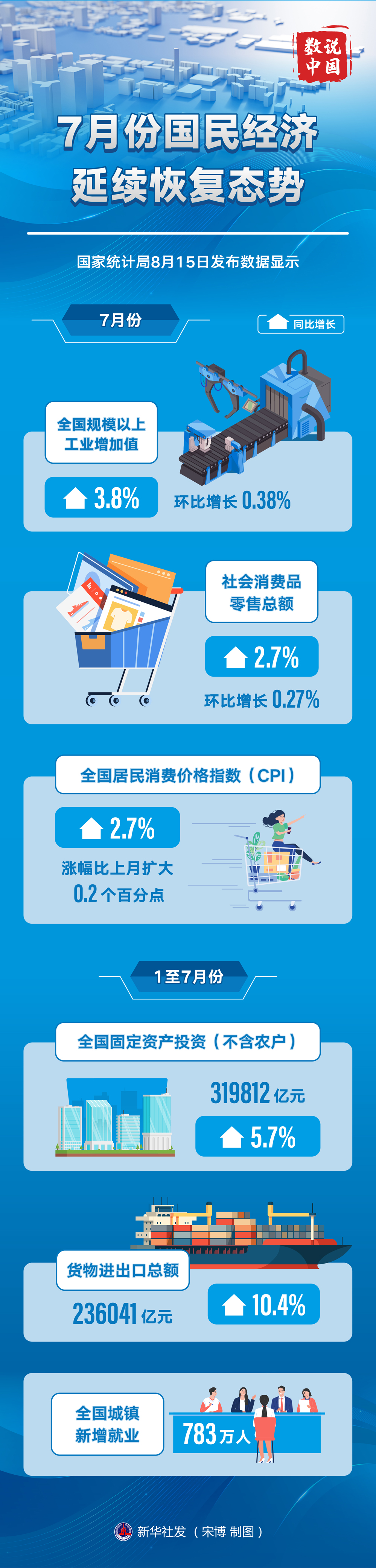 國家統(tǒng)計(jì)局:7月份國民經(jīng)濟(jì)延續(xù)恢復(fù)態(tài)勢