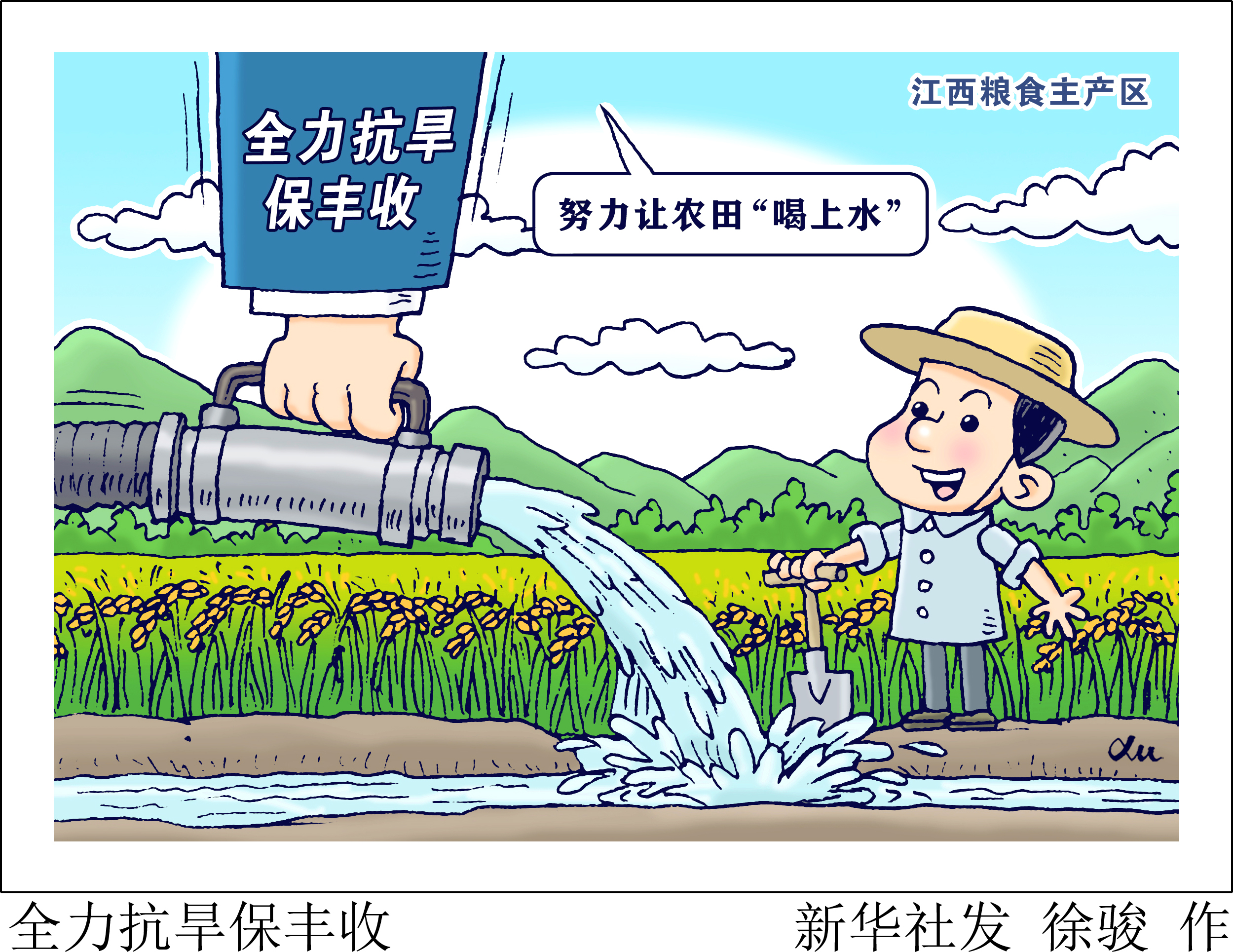 7月下旬以來,南方多地出現(xiàn)高溫少雨天氣,旱期疊加高溫熱害,對秋糧生產(chǎn)造成威脅。江西是我國糧食主產(chǎn)區(qū)之一,當?shù)馗刹咳罕娡ㄟ^打井、清溝、引水、提灌等方式,讓農(nóng)田“喝上水”,想方設法抗旱保秋糧豐收。