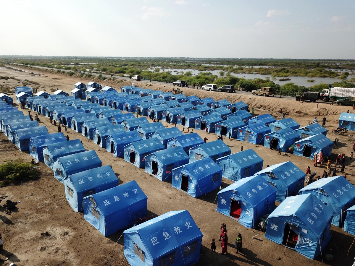 ——巴基斯坦洪災(zāi)受災(zāi)民眾住上中國(guó)援助救災(zāi)帳篷