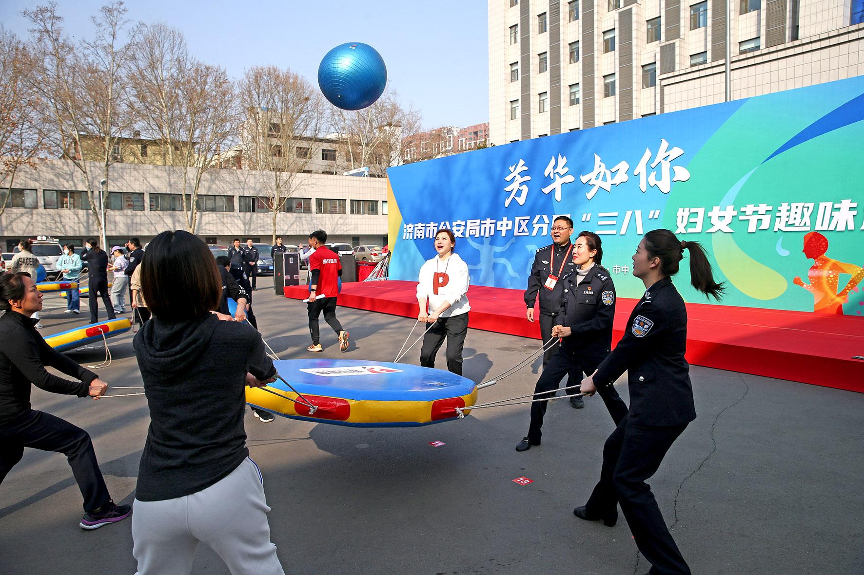 3月7日,山東省濟(jì)南市公安局市中區(qū)分局組織女民警開展“芳華如你”趣味運(yùn)動會,讓大家在歡聲笑語中迎接“三八”婦女節(jié)的到來。
