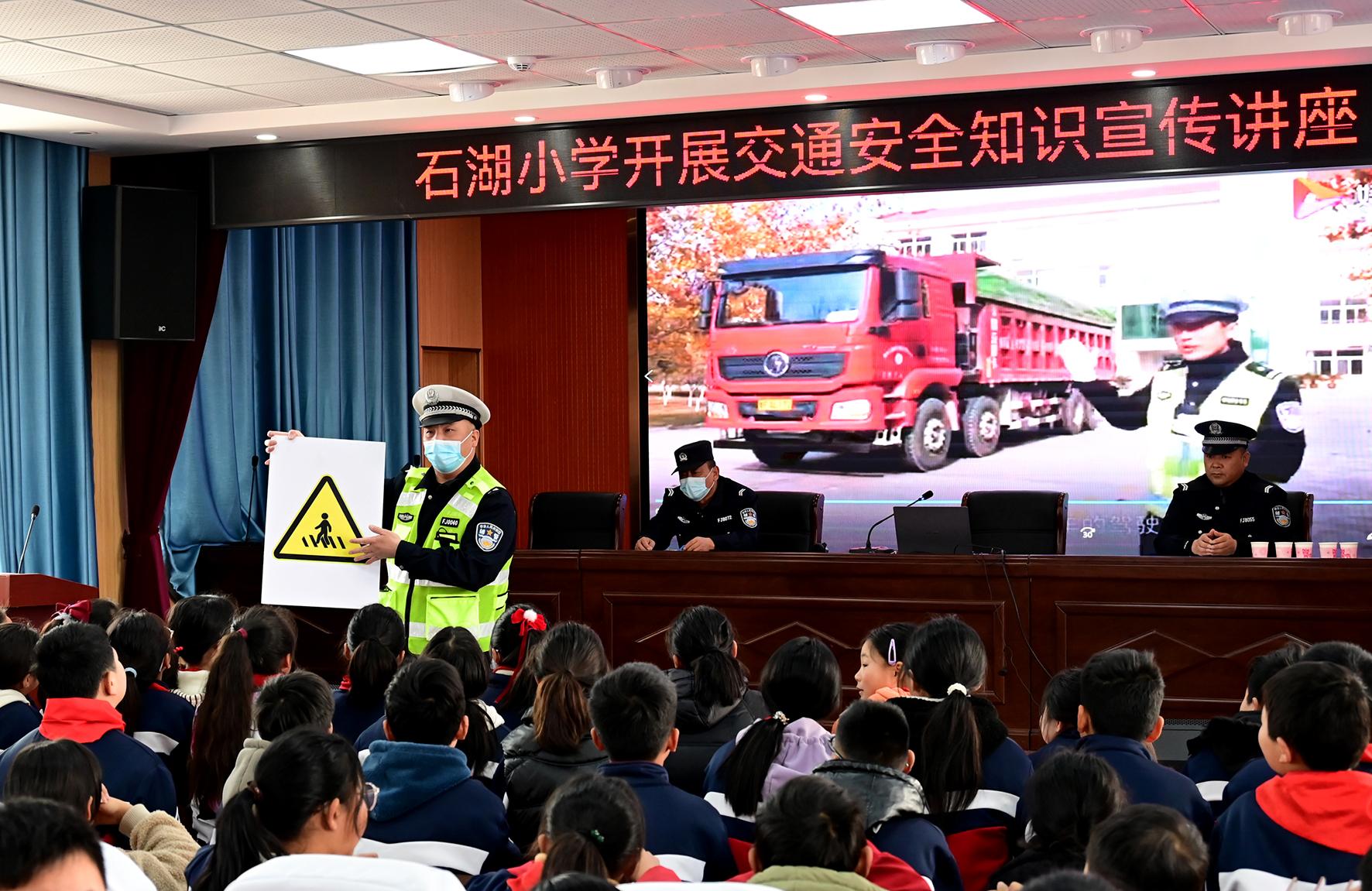 3月27日,安徽省固鎮(zhèn)縣公安局交管大隊民警在石湖小學(xué)為學(xué)生們上安全防范課。