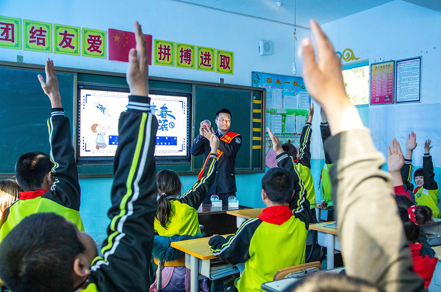 3月24日,新疆伊犁邊境管理支隊托布邊境派出所民警走進(jìn)轄區(qū)種羊場中心學(xué)開展“無毒青春 健康生活”為主題的安全教育進(jìn)校園活動。