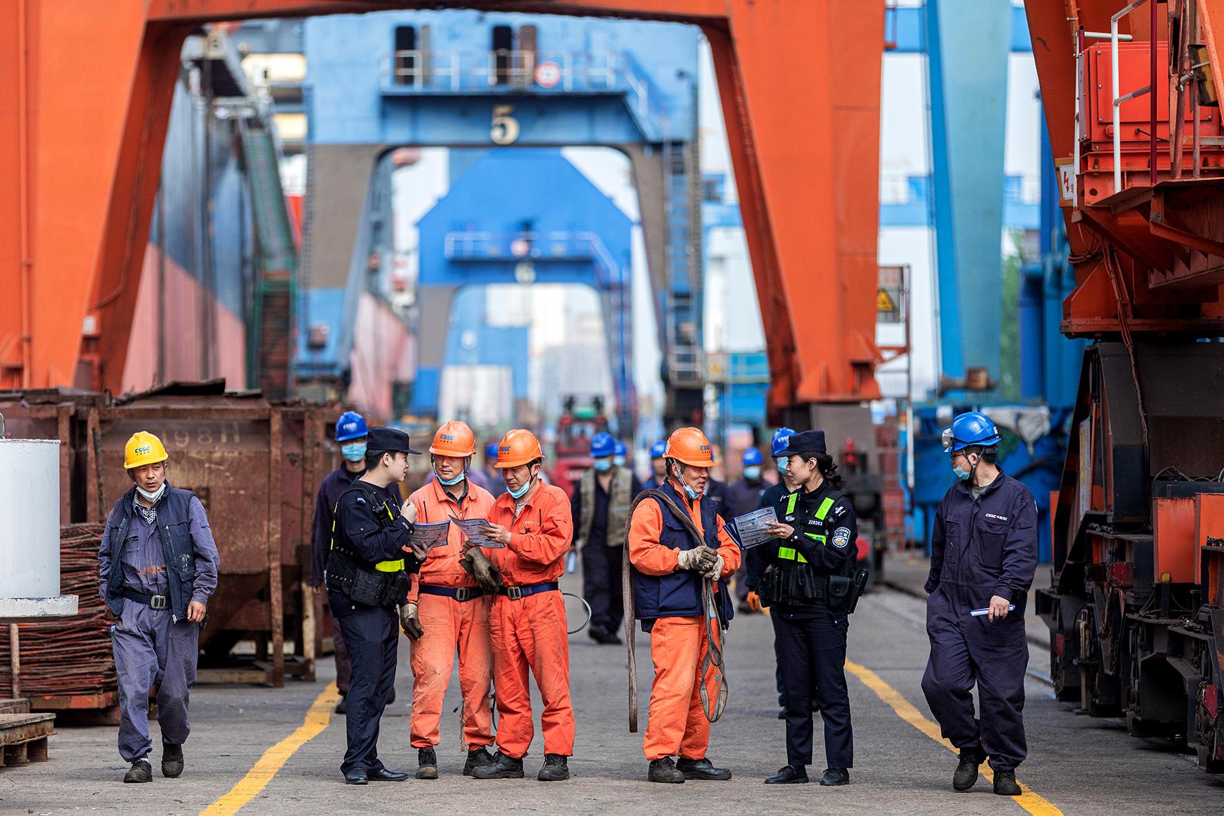 4月22日,江蘇省江陰市公安局夏港派出所民警走進轄區(qū)澄西船廠,對廠區(qū)進行巡防,并向職工開展反詐宣傳。