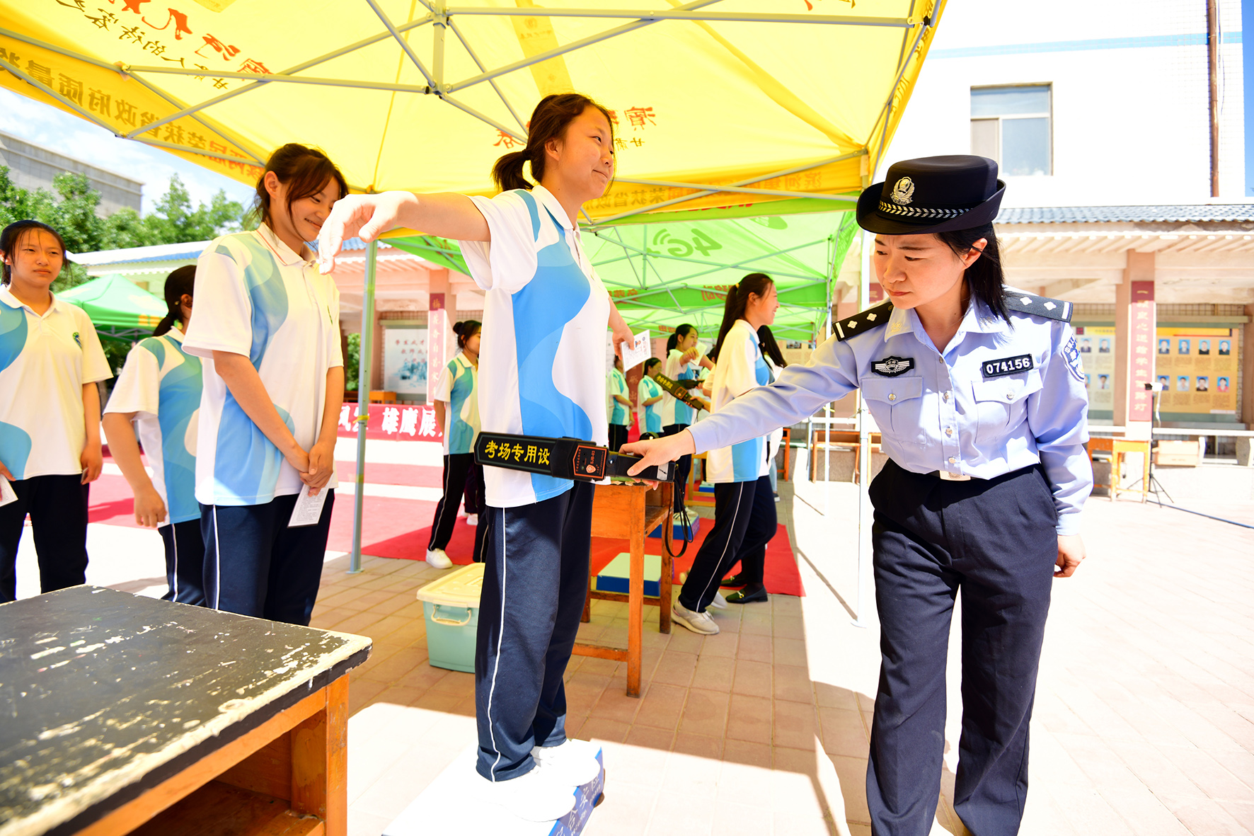 6月6日,甘肅省臨澤縣公安局開發(fā)區(qū)派出所民輔警組織轄區(qū)高三年級全體學(xué)生進行高考安檢規(guī)范演練,幫助考生提前熟悉高考入場流程。