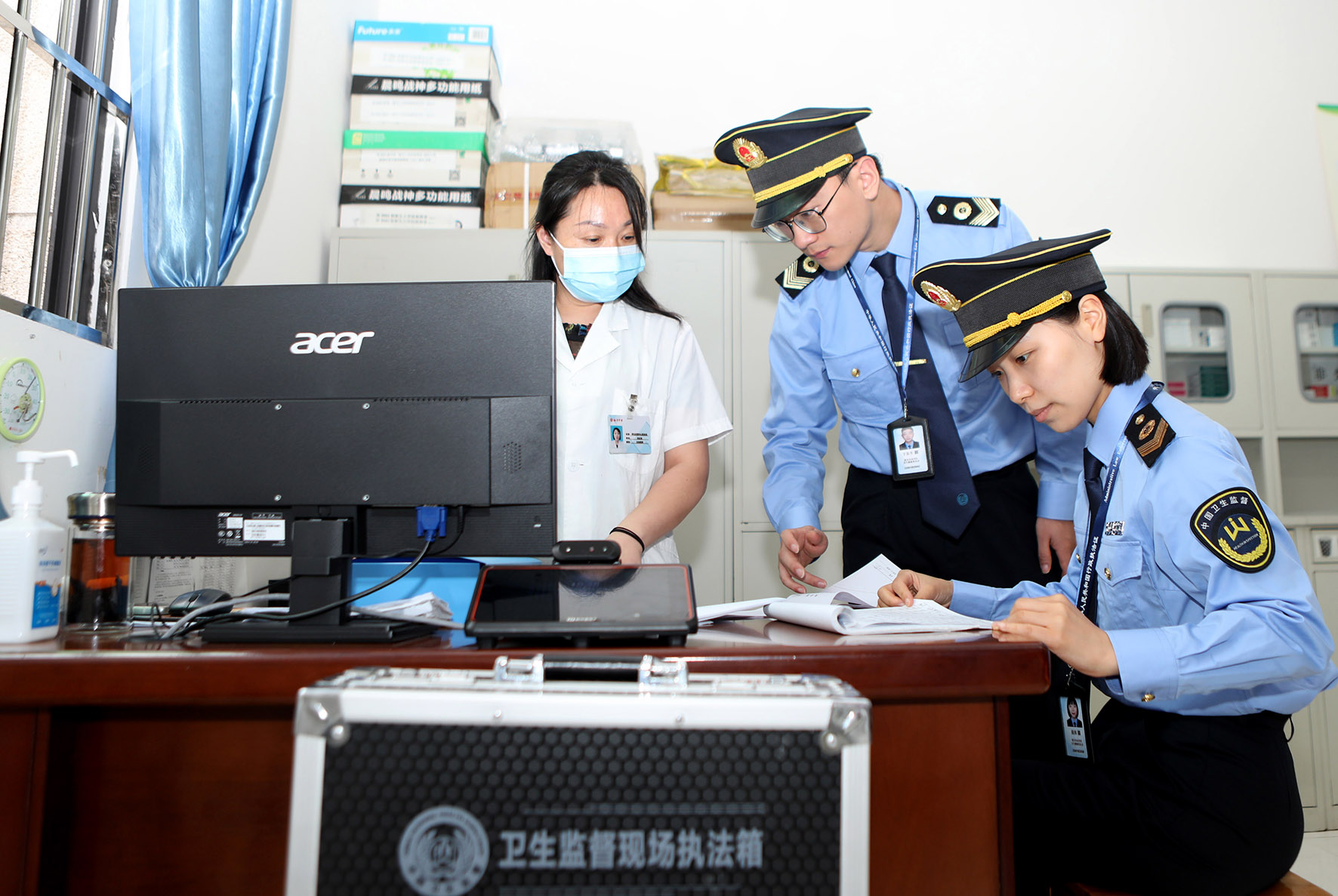 6月5日,安徽省阜南縣衛(wèi)生執(zhí)法人員對高考生入住賓館進行監(jiān)督檢查。