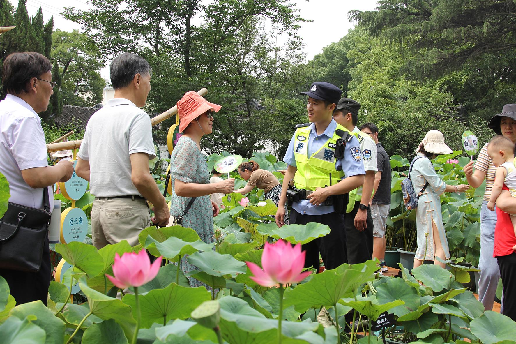 連日來,上海市公安局嘉定分局組織民輔警會同平安志愿者在第十屆上海荷花睡蓮展主、分會場加強治安巡防、秩序維護和防范宣傳,守護市民游園平安。