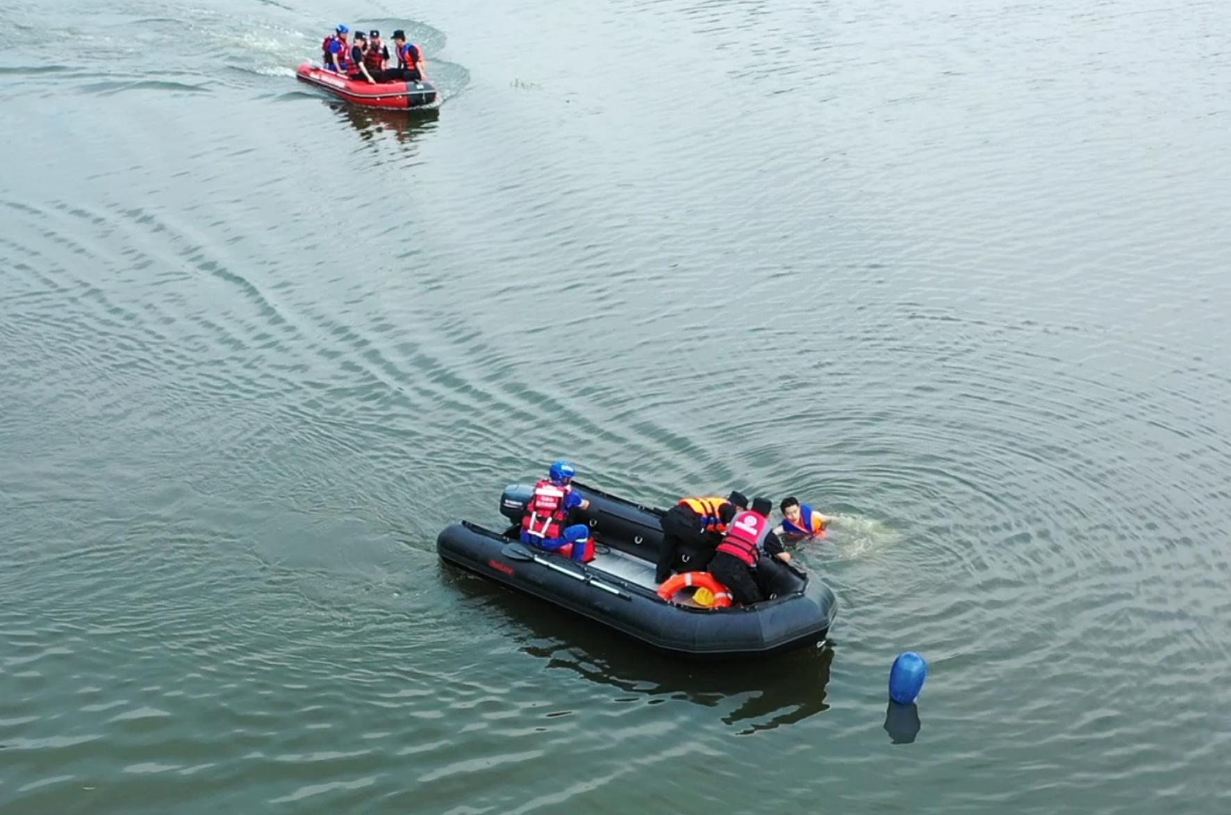 7月25日,安徽省馬鞍山市公安局特警支隊(duì)聯(lián)合藍(lán)天救援隊(duì)在雨山區(qū)節(jié)慶廣場水域開展防汛救援應(yīng)急演練。