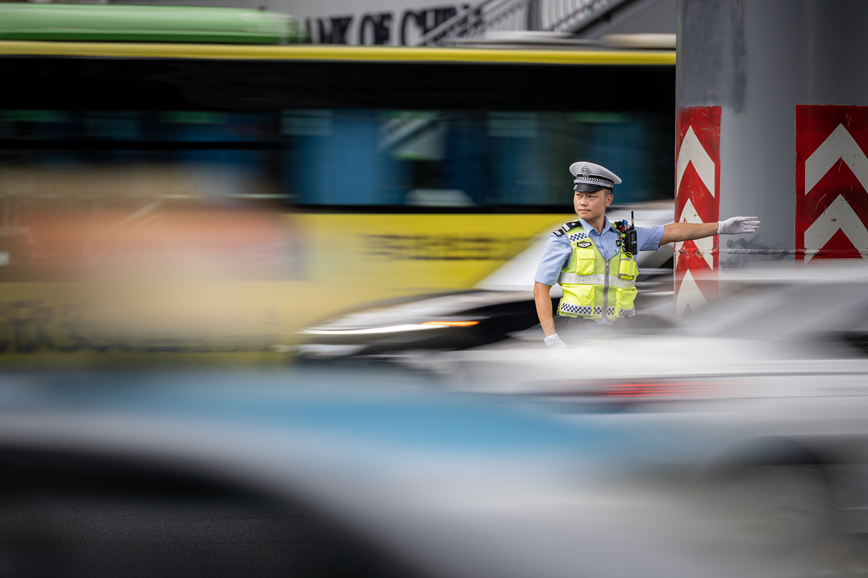 8月8日,四川省綿陽市出現(xiàn)34℃高溫天氣。綿陽市公安局交警直屬一大隊民警堅守路面,冒高溫指揮疏導(dǎo)交通,確保道路安全暢通。