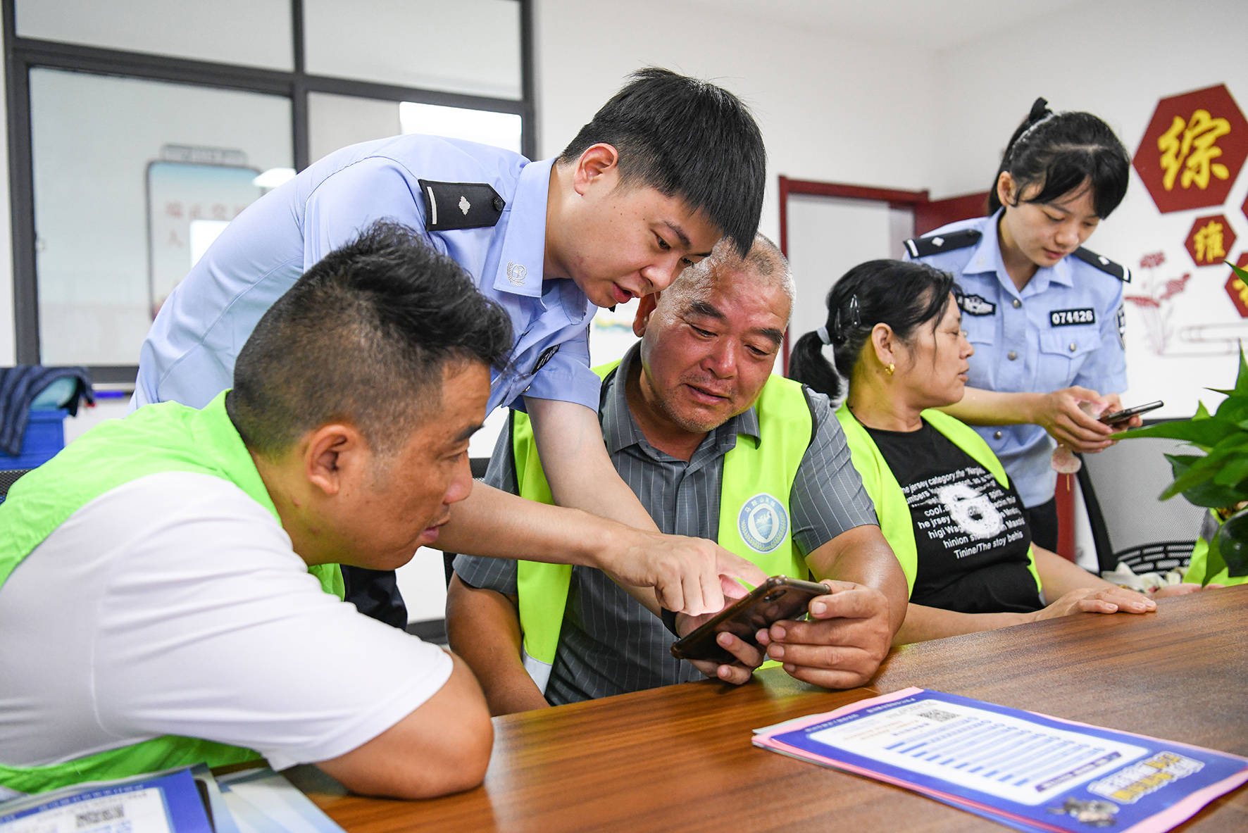 8月28日,在江蘇省如城街道顧莊社區(qū),社區(qū)民警正在向群眾普及文明上網(wǎng)以及防范網(wǎng)絡詐騙等知識。