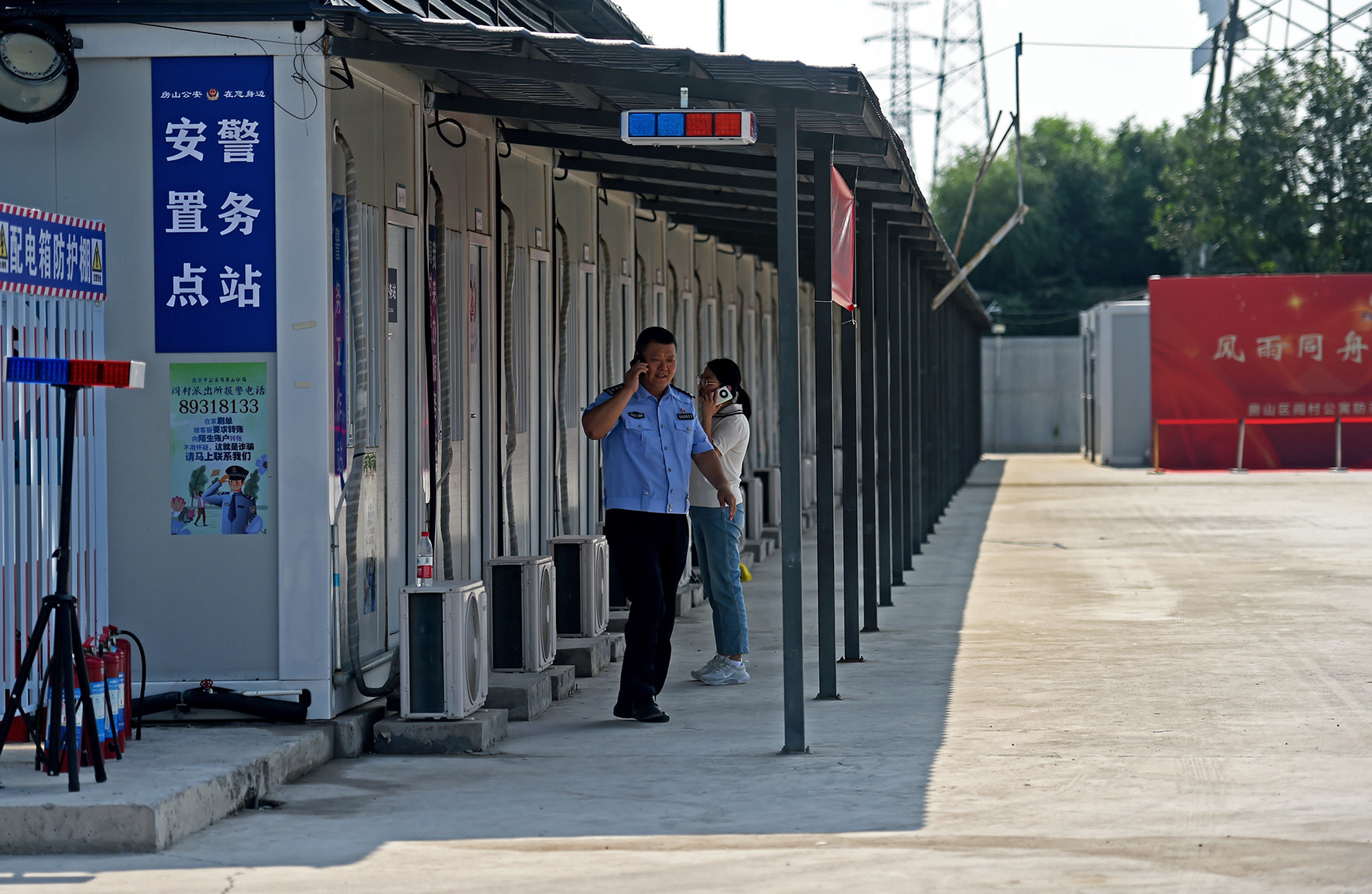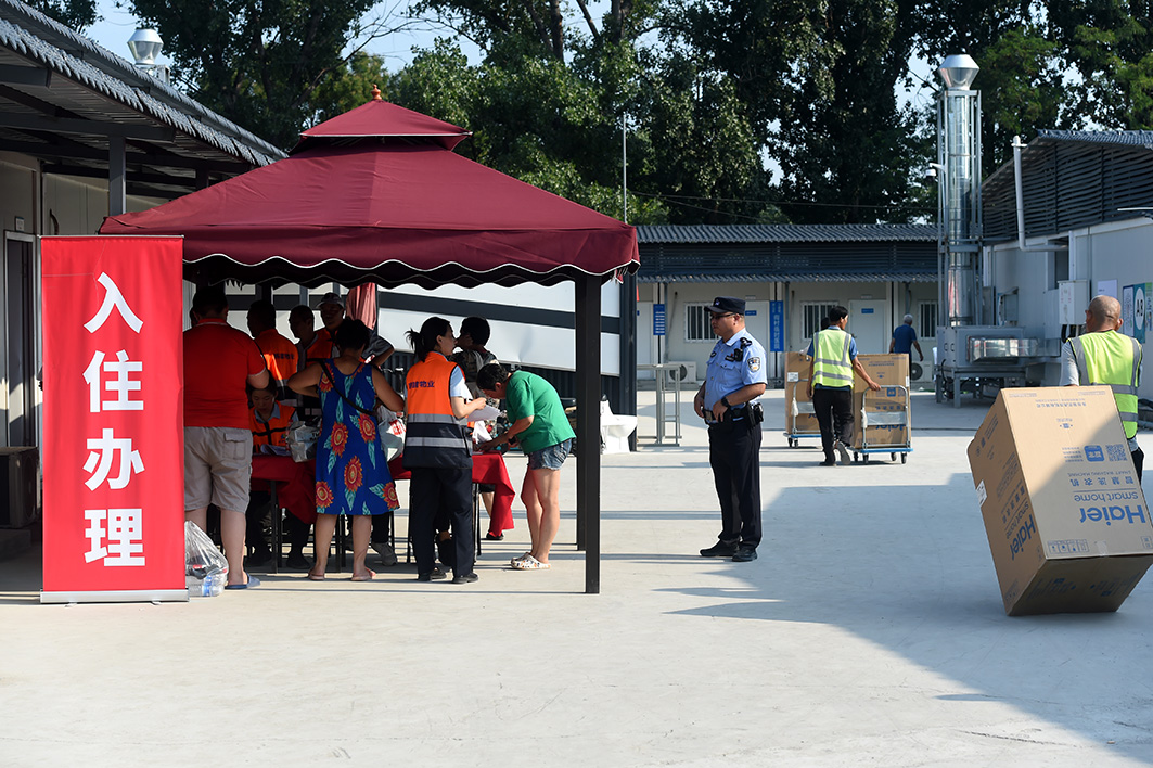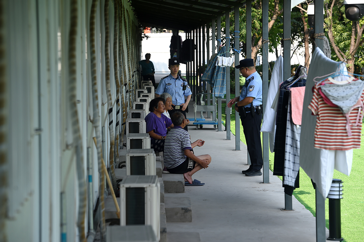 8月13日,房山區(qū)啟用閻村公寓西區(qū)作為集中安置點(diǎn),同時設(shè)立了由7名民警值守的安置點(diǎn)警務(wù)站。