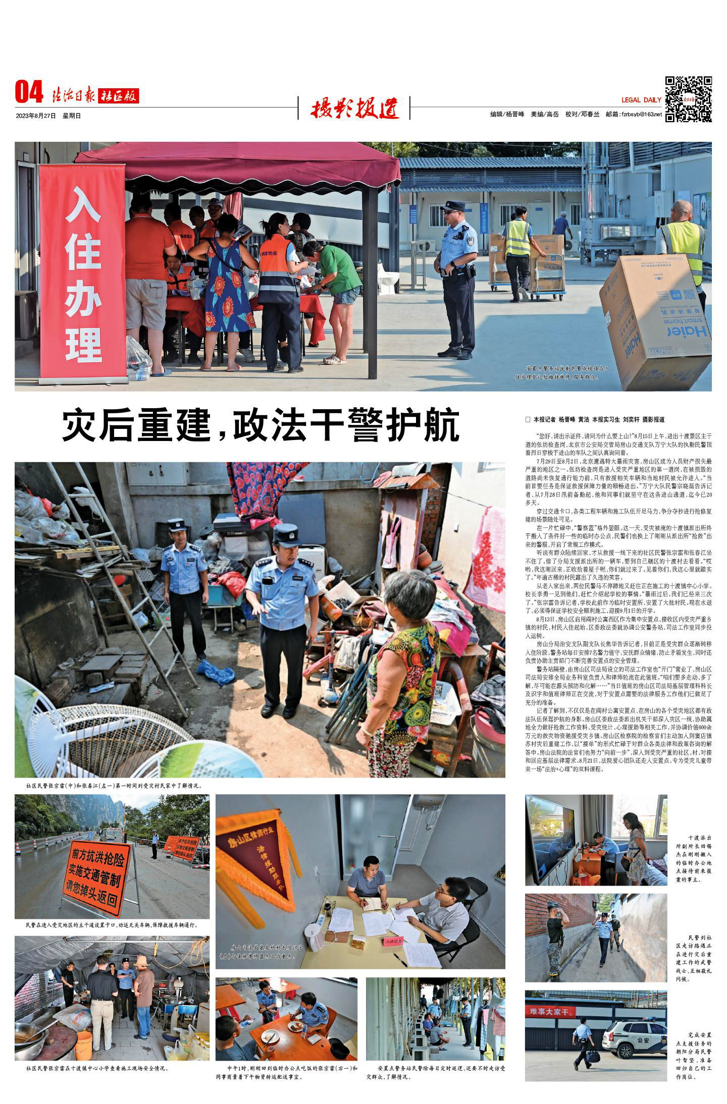 記者了解到,不僅僅是在閻村公寓安置點(diǎn),在房山的各個受災(zāi)地區(qū)都有政法隊(duì)伍保駕護(hù)航的身影。房山區(qū)委政法委派出機(jī)關(guān)干部深入災(zāi)區(qū)一線,協(xié)助屬地全力做好搶救工作資料、受災(zāi)統(tǒng)計(jì)、心理援助等相關(guān)工作,并協(xié)調(diào)價值600余萬元的救災(zāi)物資馳援受災(zāi)鄉(xiāng)鎮(zhèn)。房山區(qū)檢察院的檢察官們主動加入到竇店鎮(zhèn)蘇村災(zāi)后重建工作,以“接單”的形式忙碌于對群眾各類法律和政策咨詢的解答中。房山法院的法官們也努力“向前一步”,深入到受災(zāi)嚴(yán)重的社區(qū)、村,對接和回應(yīng)基層法律需求。8月21日,法院愛心團(tuán)隊(duì)還走入安置點(diǎn),專為受災(zāi)兒童帶來一場“法治+心理”的雙料課程。