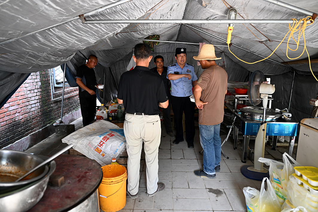 安置點(diǎn)警務(wù)站民警除每日定時巡邏,還要不時走訪受災(zāi)群眾,了解情況。