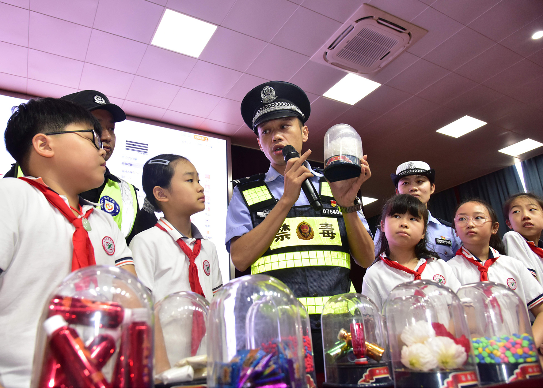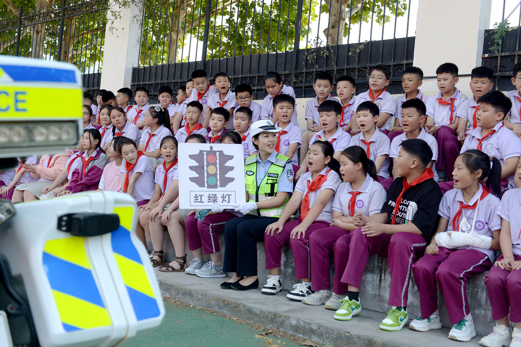 9月1日,安徽省當涂縣公安局禁毒部門聯合交管大隊民警走進實驗小學,為同學們講解道路交通安全、禁毒等知識。