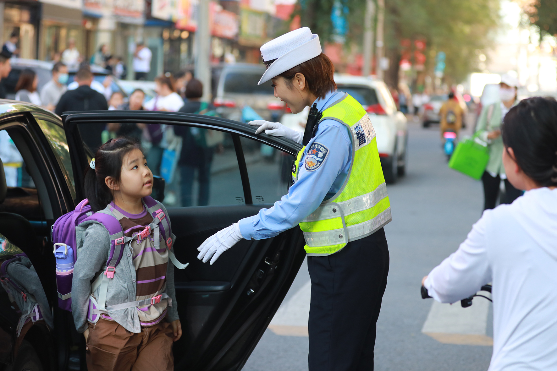 9月1日,遼寧省阜新市公安局交警支隊海州交警大隊護學崗民警提前到崗,全力保障校園周邊道路交通秩序。