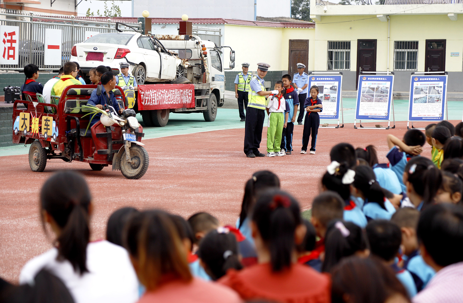 9月1日,陜西省渭南市公安局交警支隊臨渭大隊民警走進農村小學開展“交通安全第一課”活動。