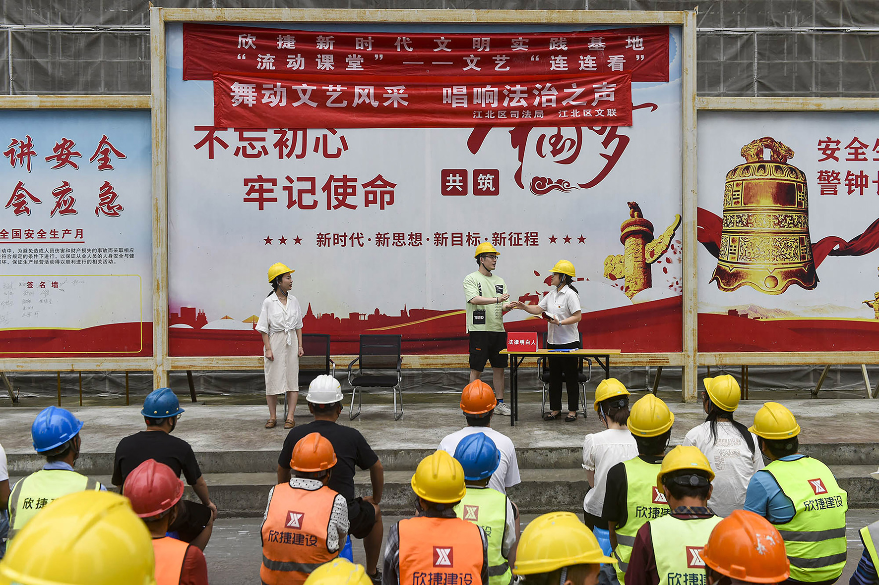9月14日,浙江省寧波市住建系統(tǒng)組織文藝小分隊和司法工作者來到保障房項目工地,給建筑工人進行普法宣傳。
