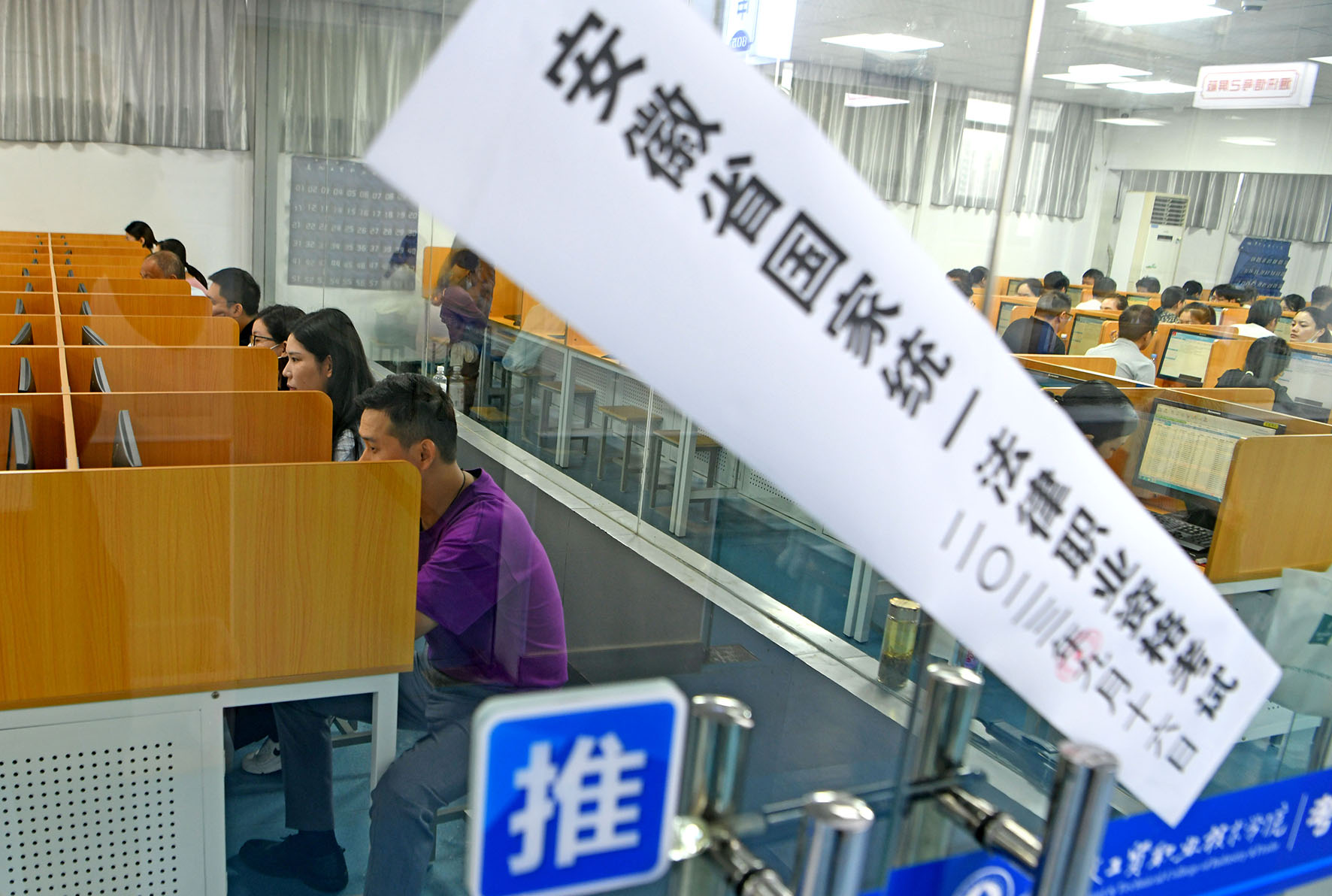 9月16日,安徽省淮南市考生在安徽工貿(mào)職業(yè)技術學院考點參加2023年國家統(tǒng)一法律職業(yè)資格考試客觀題考試。