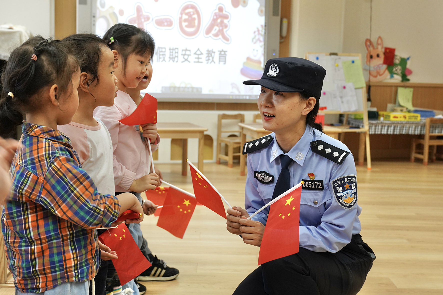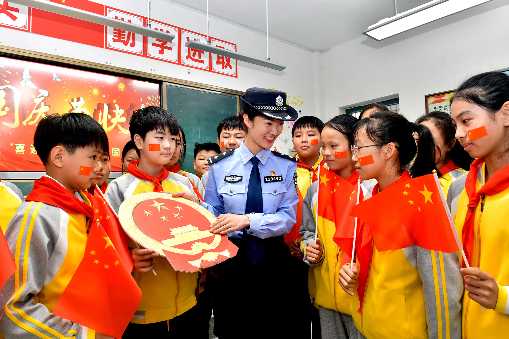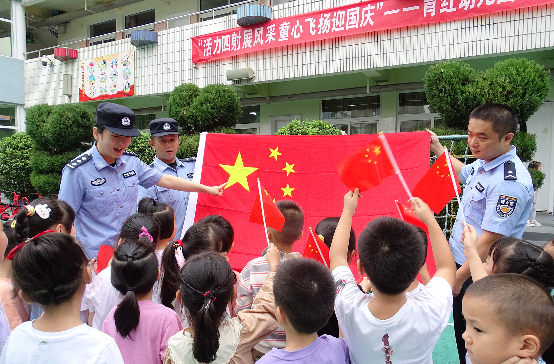 9月27日,安徽省合肥市公安局瑤海分局龍崗派出所民警輔警走進(jìn)轄區(qū)幼兒園開展“我為祖國(guó)送祝?!敝黝}教育活動(dòng)。