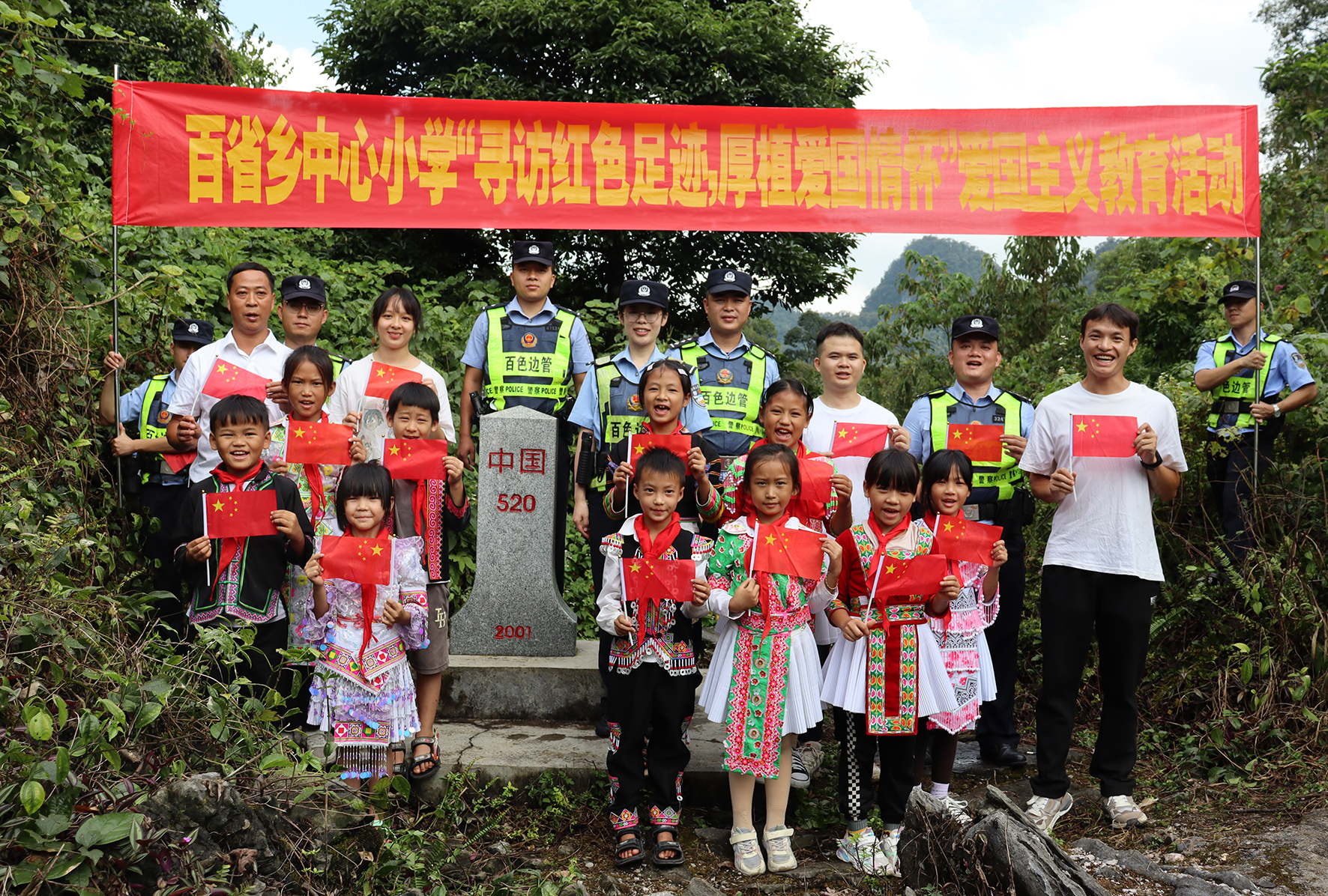 9月28日,廣西百色邊境管理支隊(duì)百省邊境派出所移民管理警察和百省鄉(xiāng)中心小學(xué)少數(shù)民族師生代表前往邊境開展“追尋紅色足跡 厚植愛國(guó)情懷”愛國(guó)主義教育活動(dòng)。