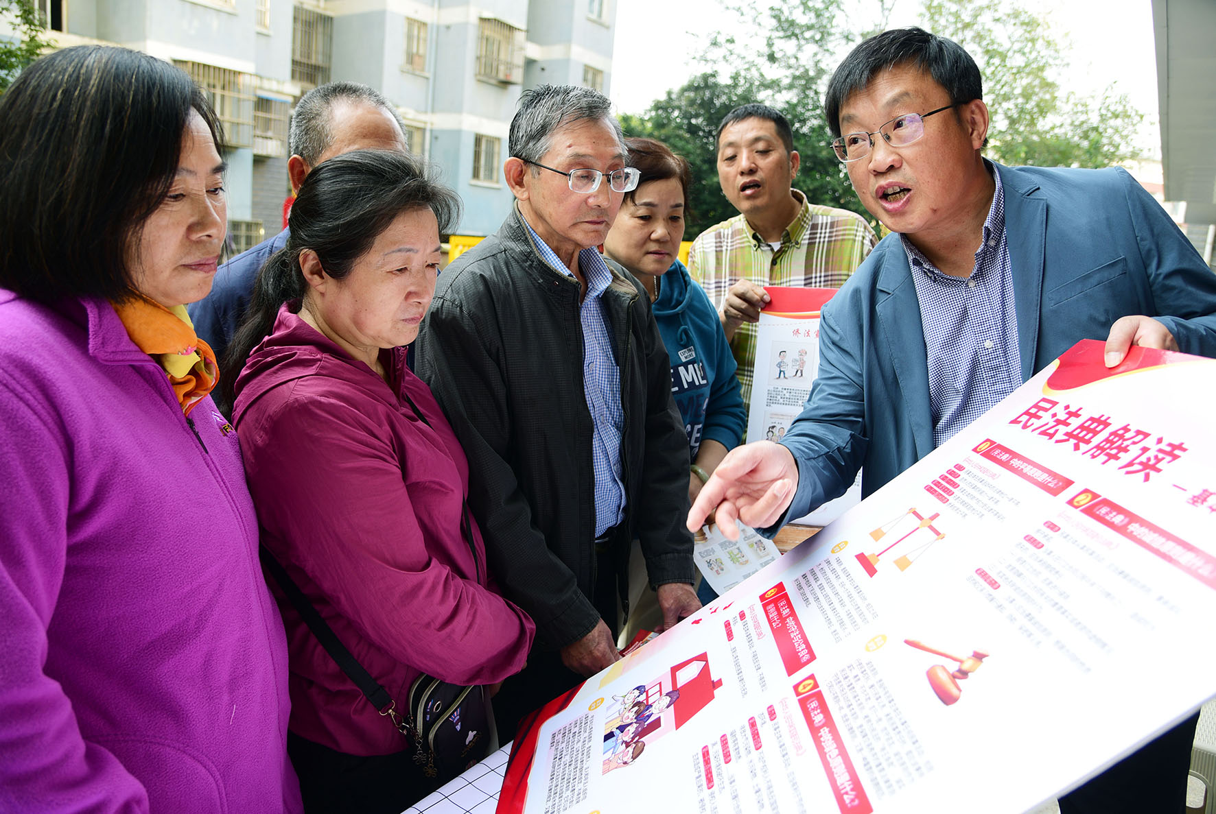 圖為律師通過案例為居民解讀民法典相關(guān)知識(shí)。