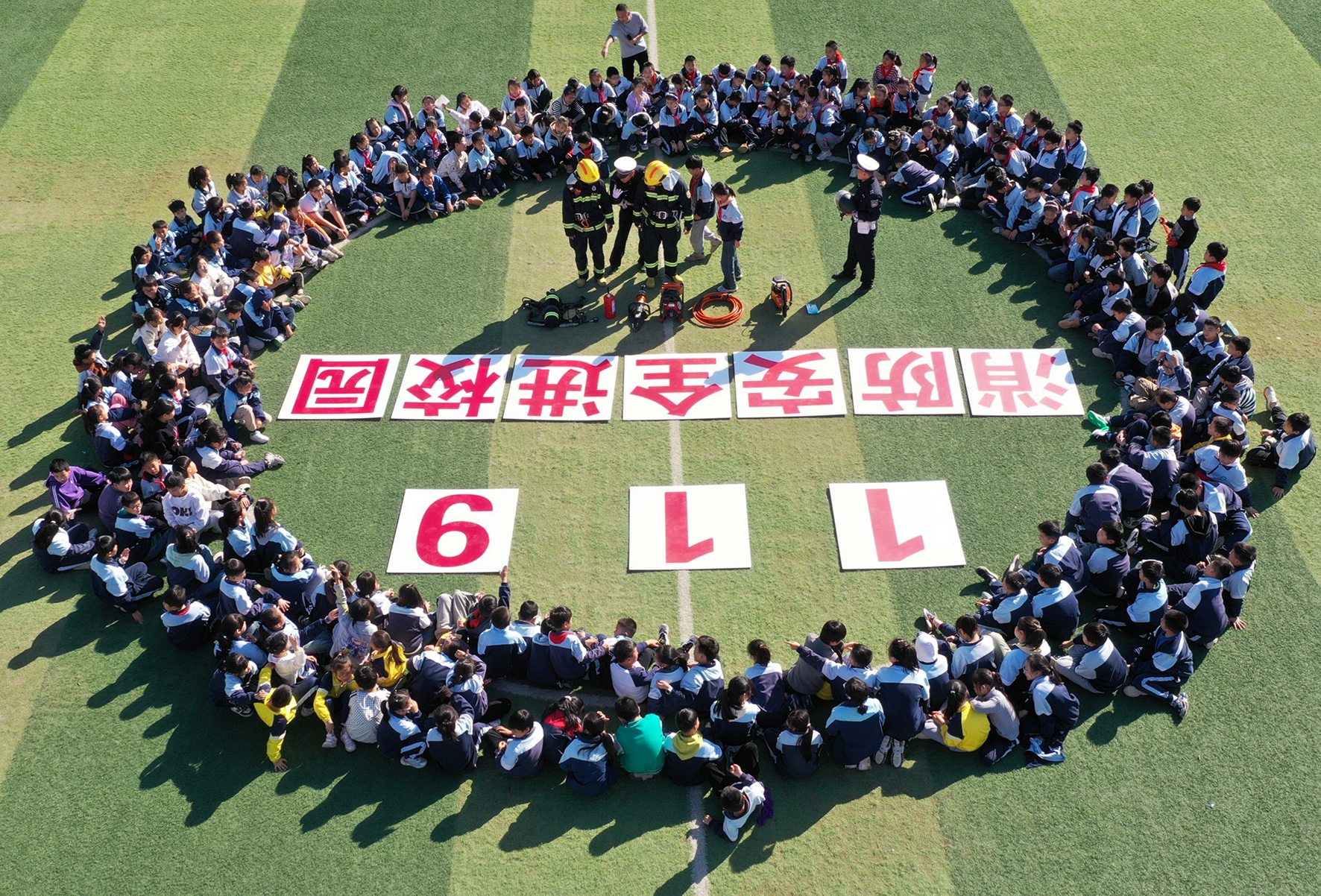 11月7日,安徽省阜南縣公安局城關派出所民警、消防救援大隊消防員向學生們宣講消防安全知識,提高師生們的自防自救能力。