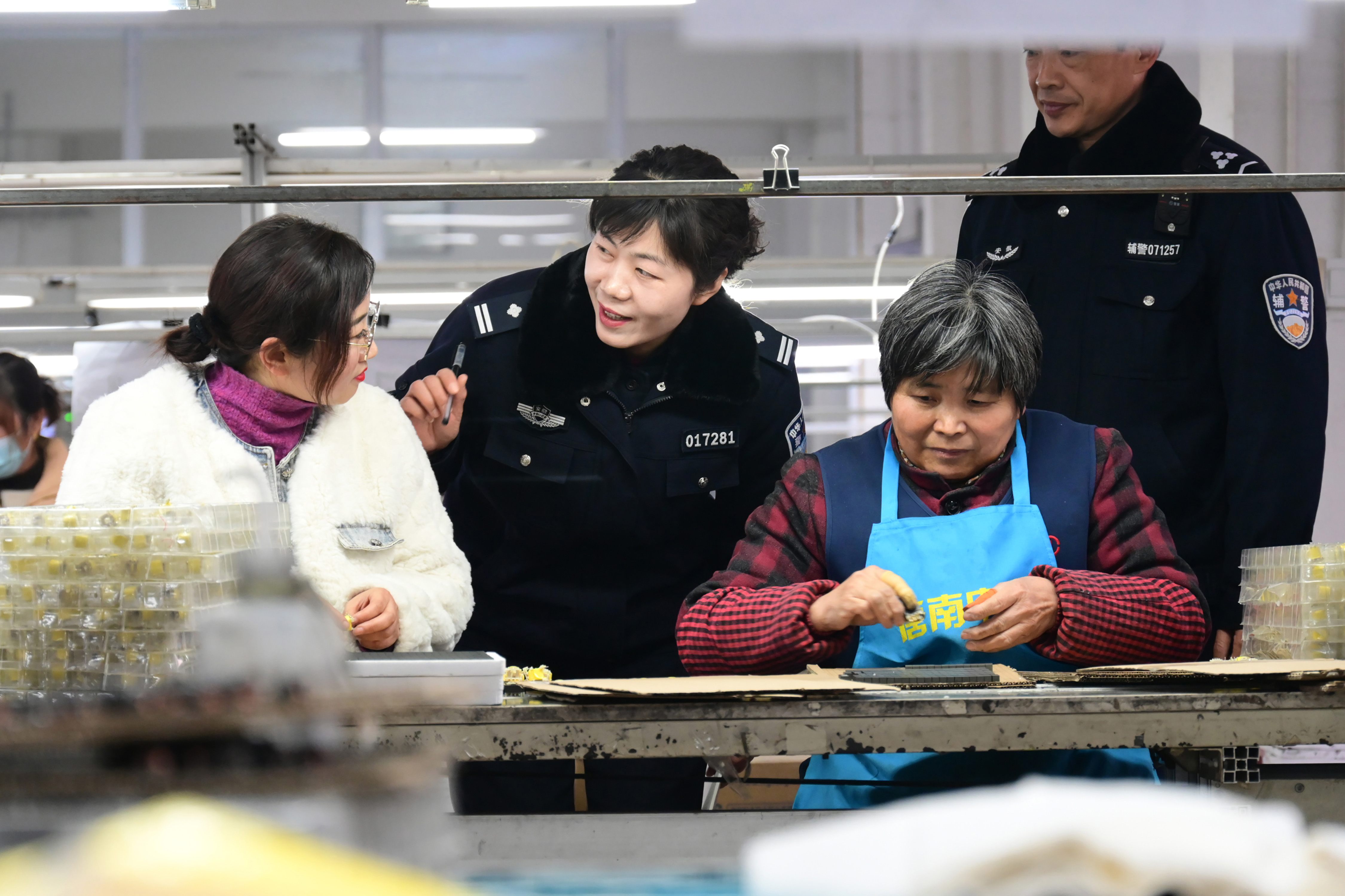 圖為12月26日,民警在某電子廠走訪,向員工講解防范電信詐騙知識(shí)。