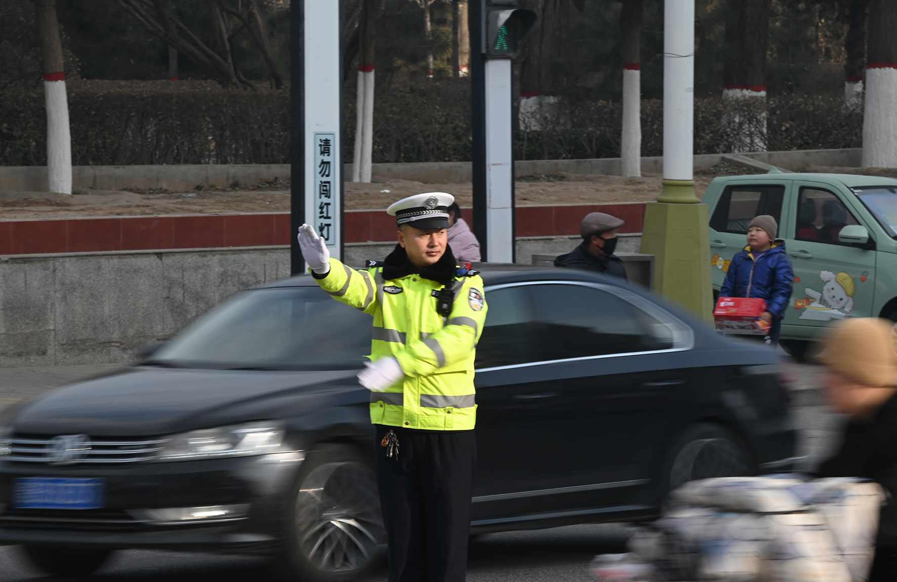 1月1日,山西省廣靈縣公安局交警大隊(duì)民警在縣城主要路段維持交通秩序。