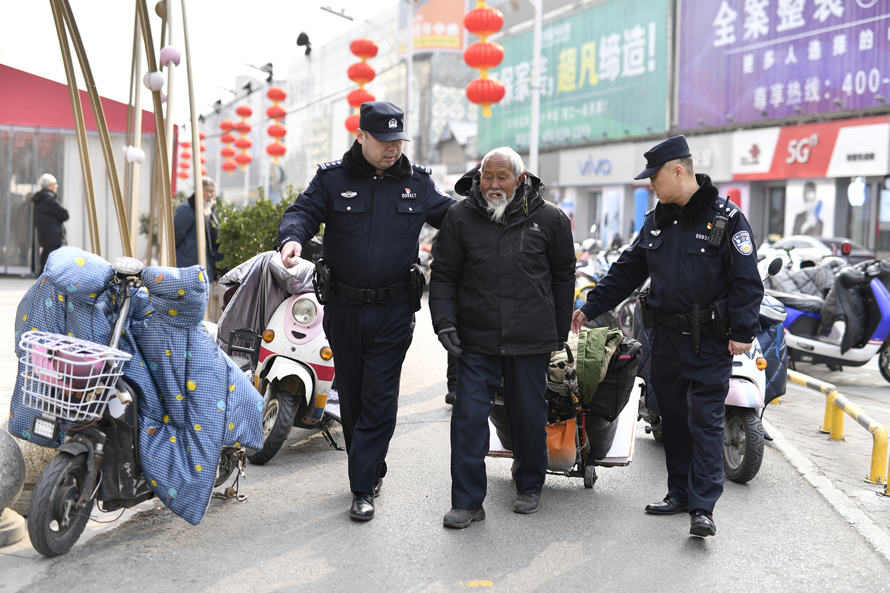 1月1日,河南省鄭州市公安局金水分局巡特警隊(duì)員在街面巡邏守護(hù),服務(wù)群眾。