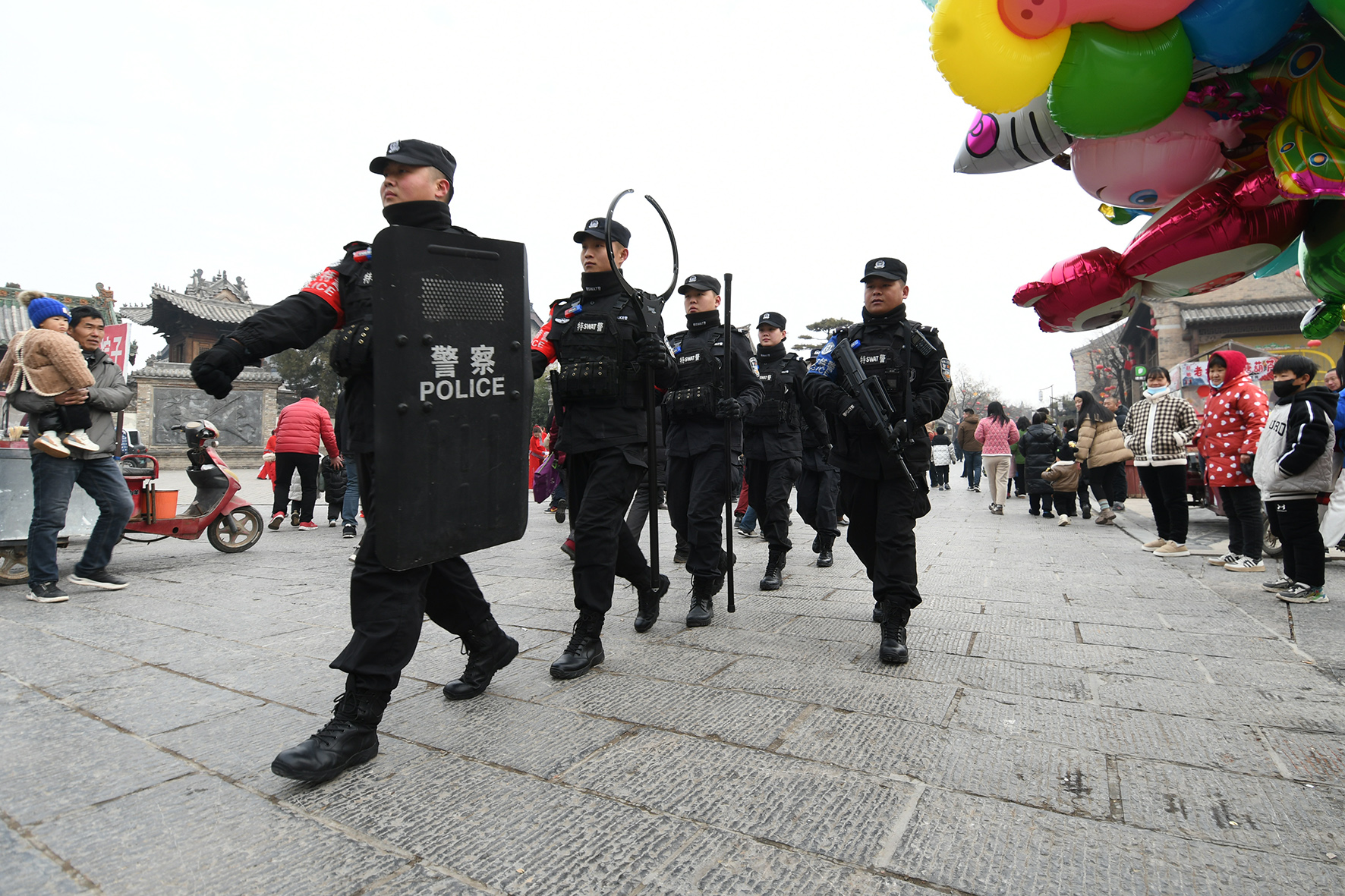 1月1日,河南省浚縣公安局巡特警大隊(duì)民輔警在古城景區(qū)執(zhí)勤巡邏。
