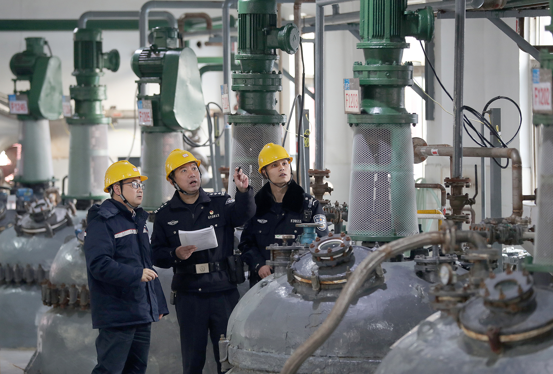 2023年12月31日,湖北省荊門市公安局高新區(qū)·掇刀區(qū)分局白廟派出所民警,對易制毒化學(xué)品企業(yè)開展安全隱患排查。