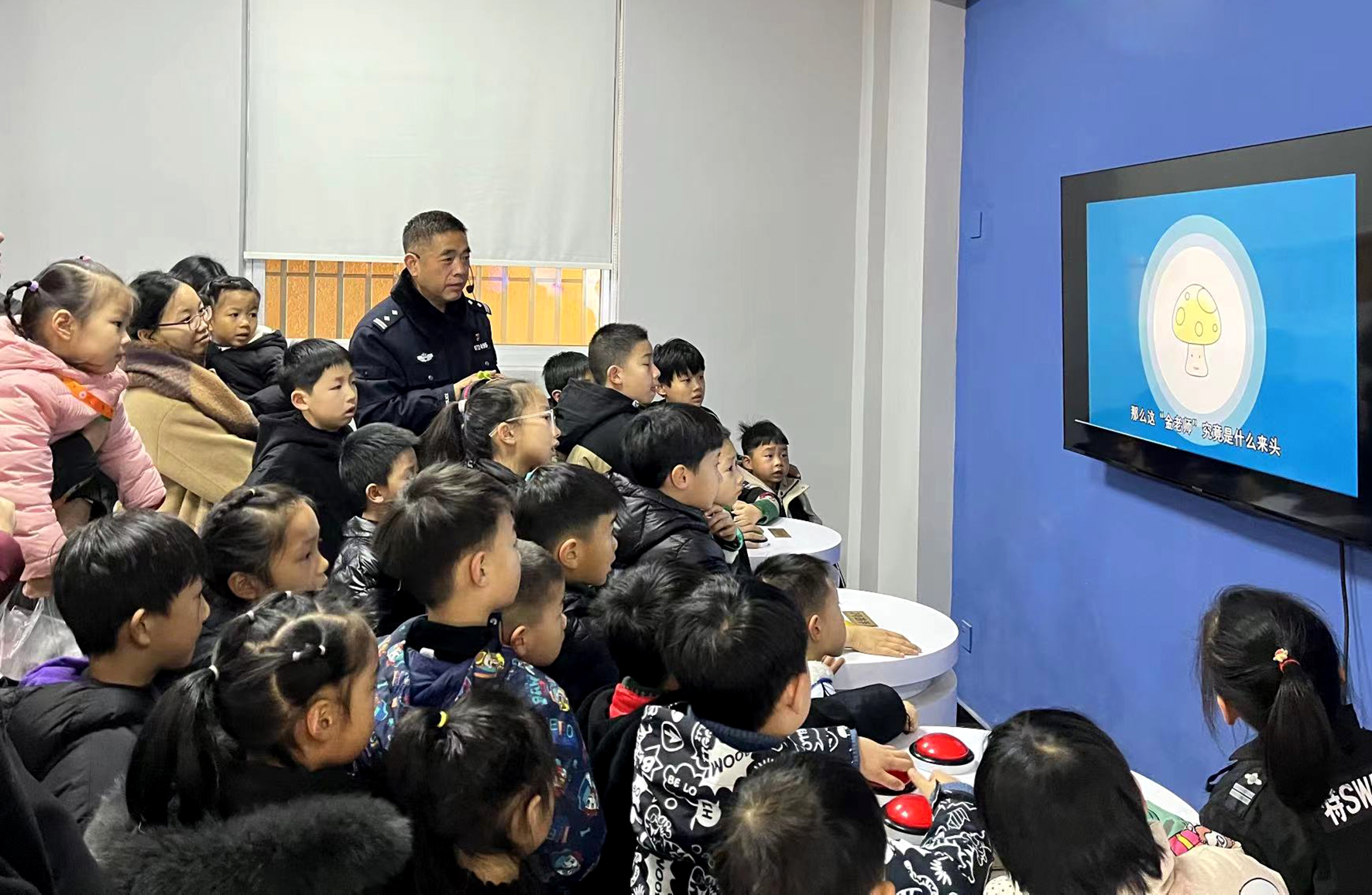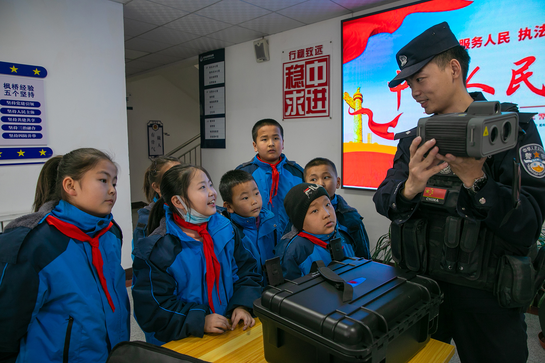 1月8日,貴州省赤水市公安局組織民警走進千藝幼兒園,讓小朋友們“零距離”體驗警用裝備。
