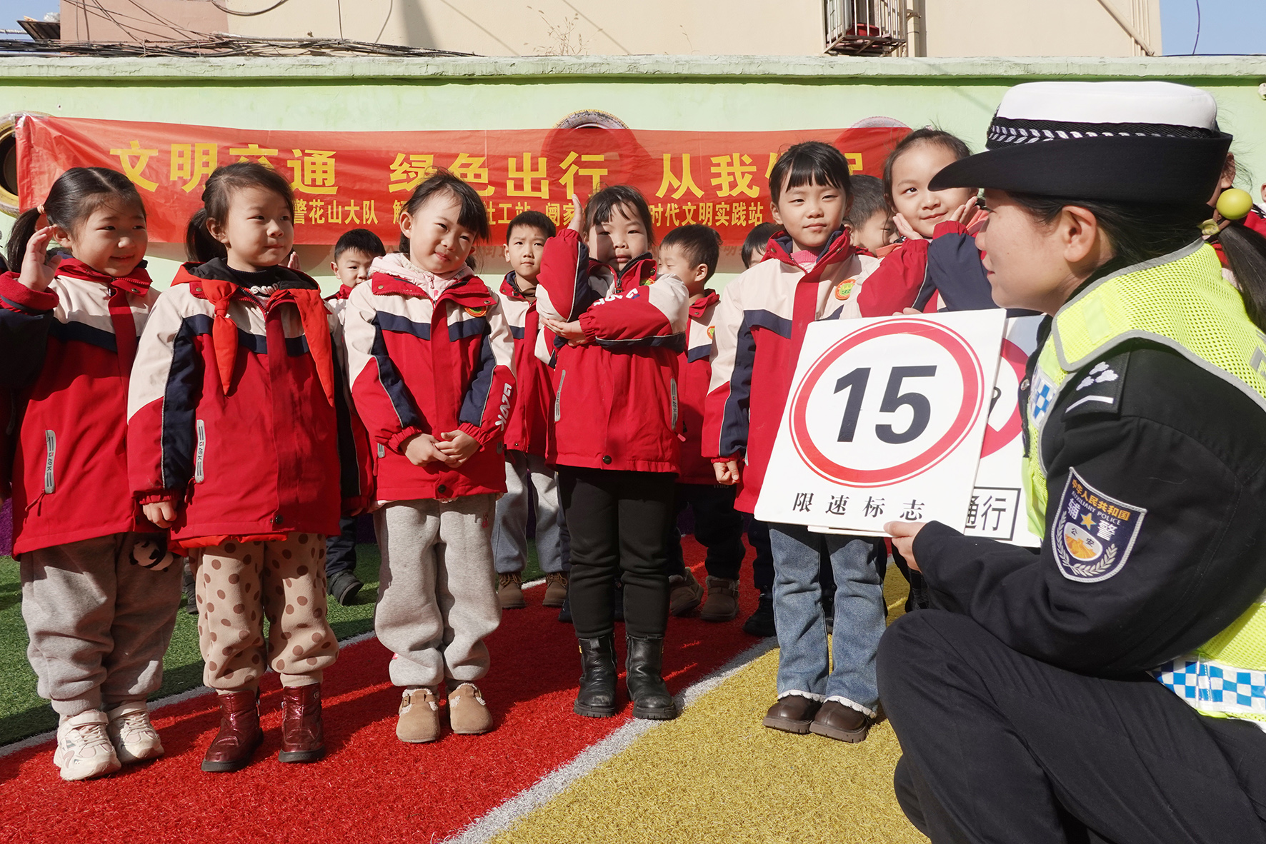 1月11日,安徽省馬鞍山市花山區(qū)解放路街道閿家山社區(qū)新時(shí)代文明實(shí)踐站聯(lián)合花山交警大隊(duì)、解放路街道社工站,在花果山幼兒園開展“文明交通 綠色出行 從我做起”交通安全主題活動(dòng)。