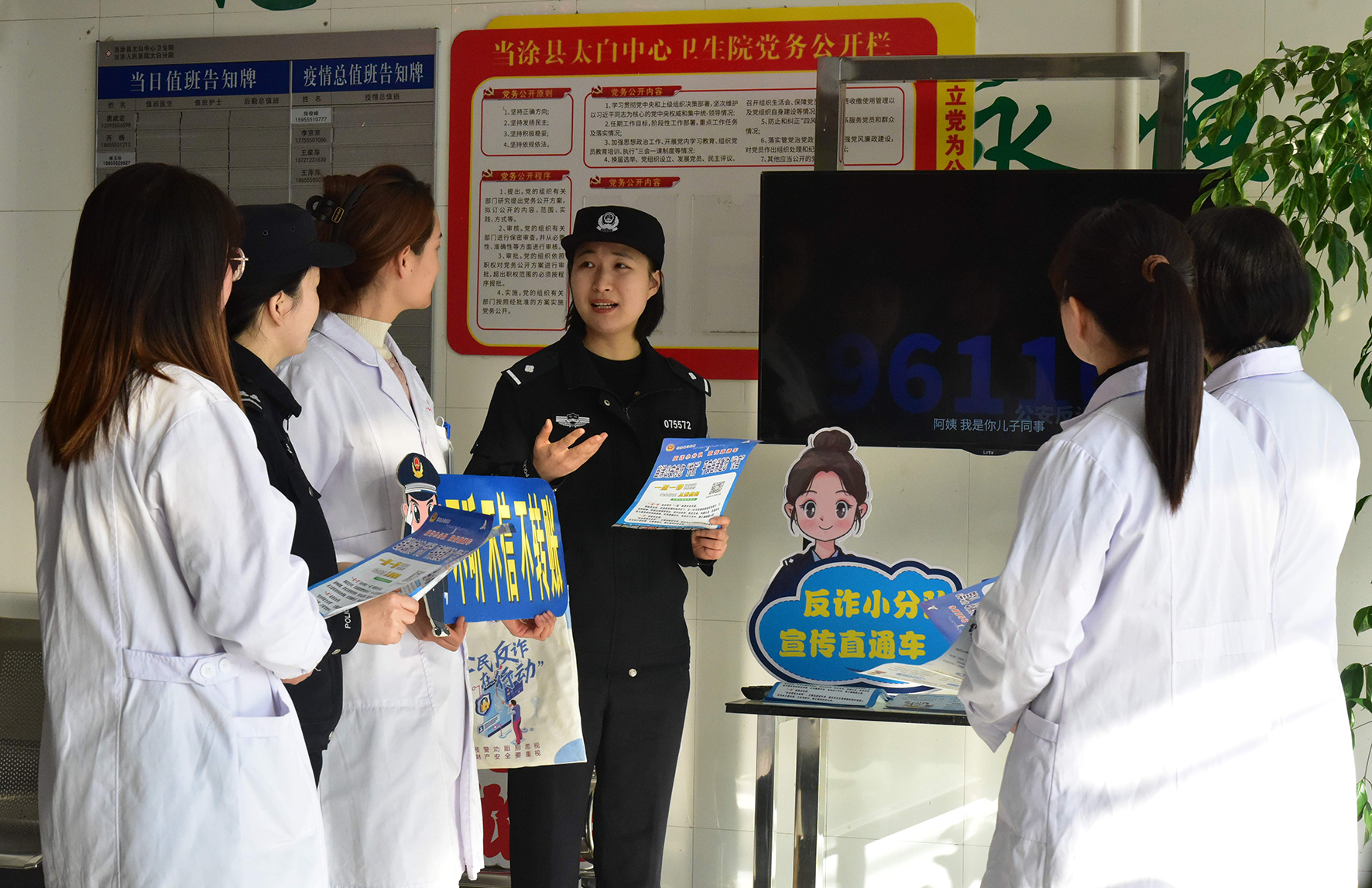 1月15日,安徽省當(dāng)涂縣公安局刑偵大隊(duì)反電詐中心民警聯(lián)合太白派出所民警來到太白中心衛(wèi)生院開展反電詐宣傳教育活動(dòng)。