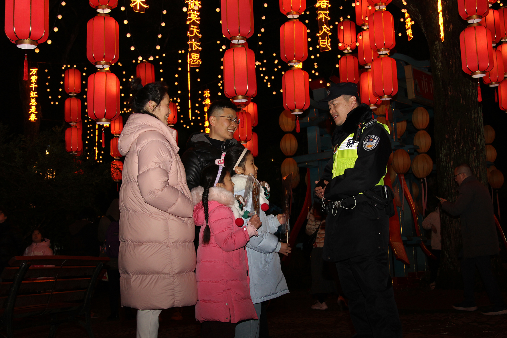 2月23日,河南省鄭州市公安局金水分局巡特警隊(duì)員在轄區(qū)鬧元宵場地,向群眾宣講節(jié)日安全防范知識(shí)。