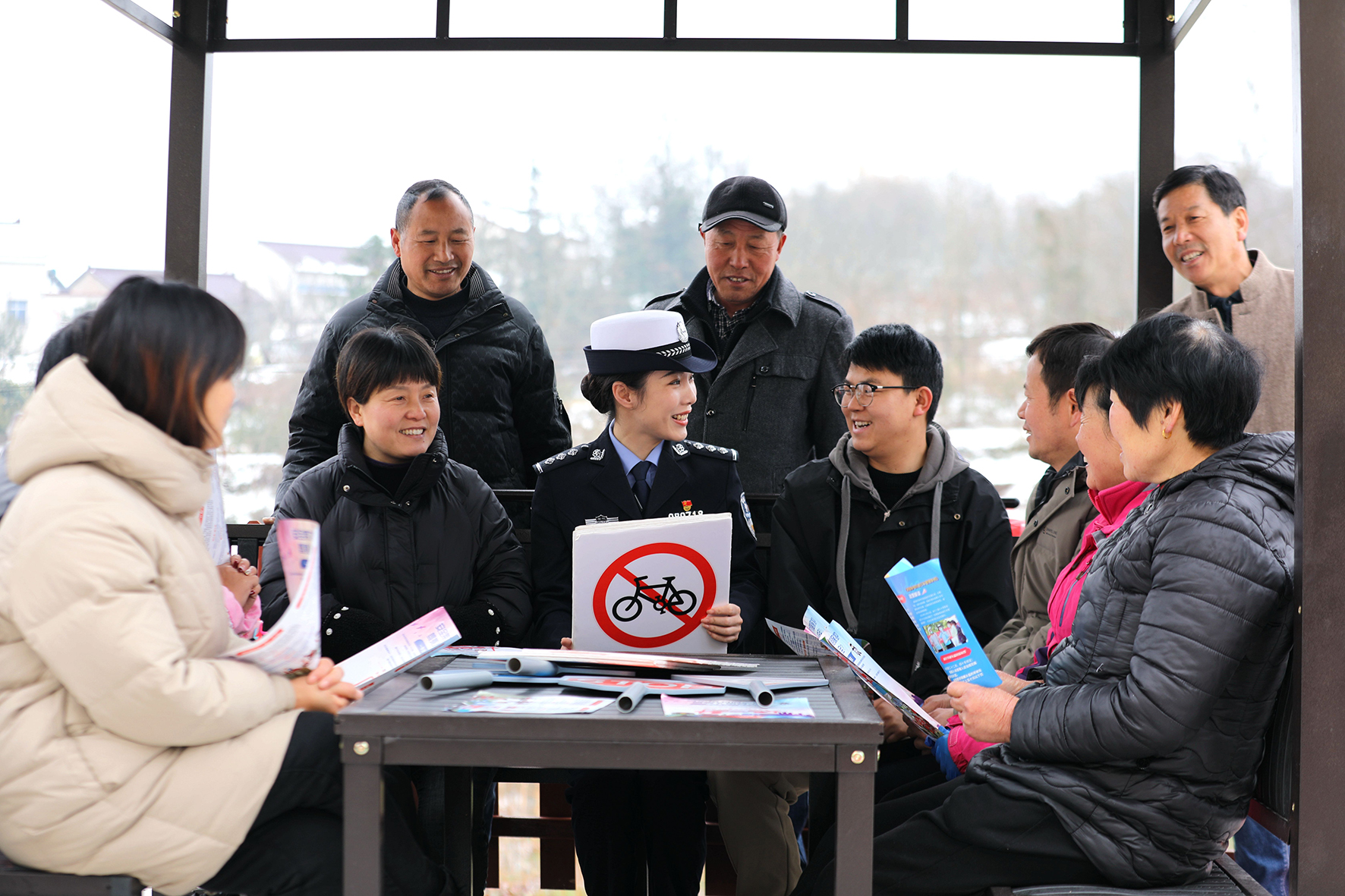 2月26日,安徽省舒城縣公安局交管大隊民警來到闕店鄉(xiāng)楓嶺村開展交通安全宣傳活動。
