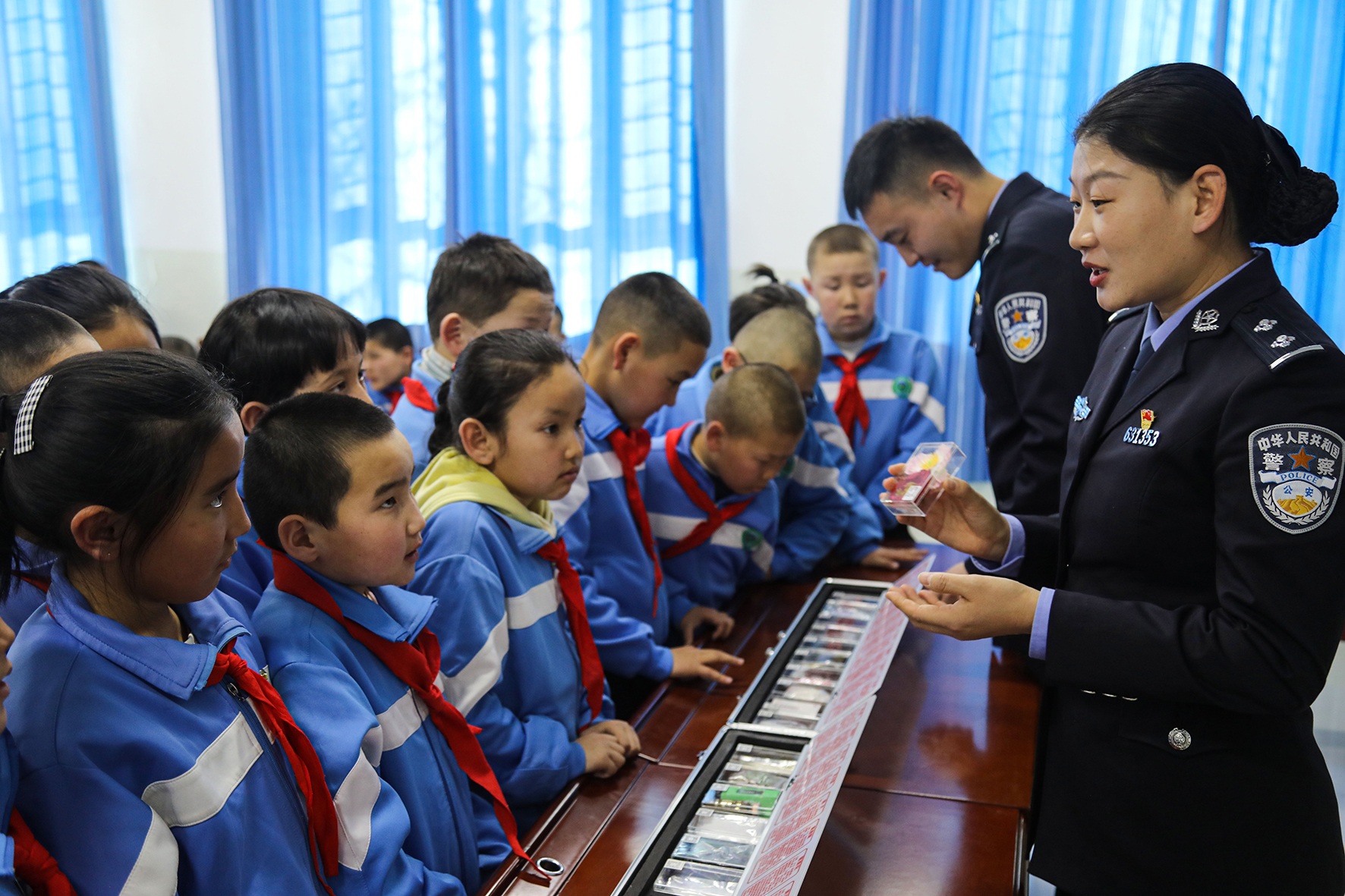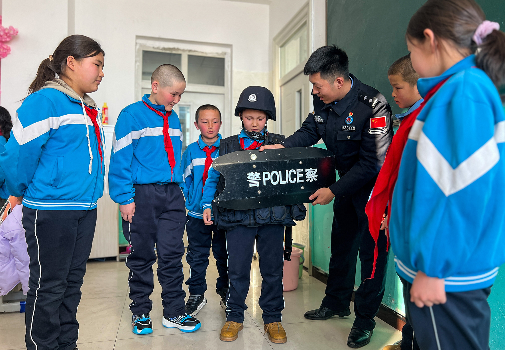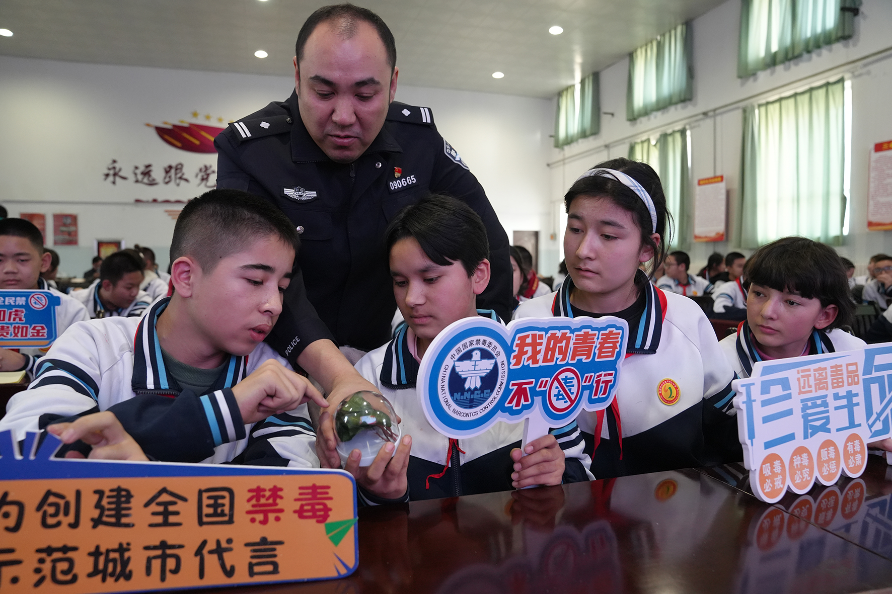 2月26日,新疆出入境邊防檢查總站阿勒泰邊境管理支隊拜興邊境派出所聯(lián)合青河縣公安局禁毒大隊走進拜興小學,給學生們送上“開學第一課”。