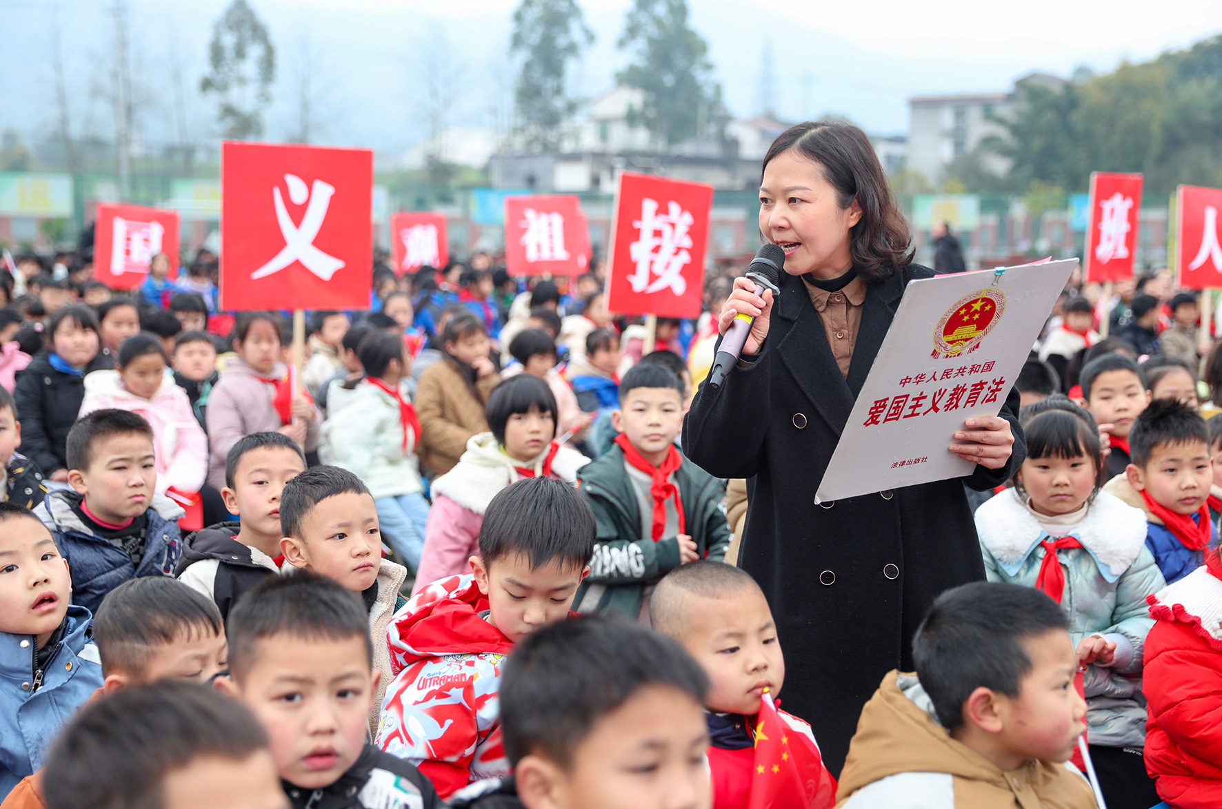 2月26日,四川省華鎣市委政法委、法學會和老年志愿者法治宣講團聯(lián)合組織的宣傳小分隊普法志愿者,為學生們宣講愛國主義教育法。