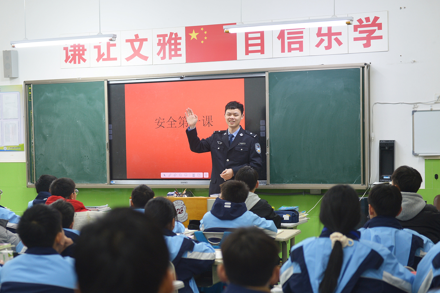 2月26日,浙江省三門縣公安局海潤派出所組織民警進校園開展“護苗”安全教育課活動。