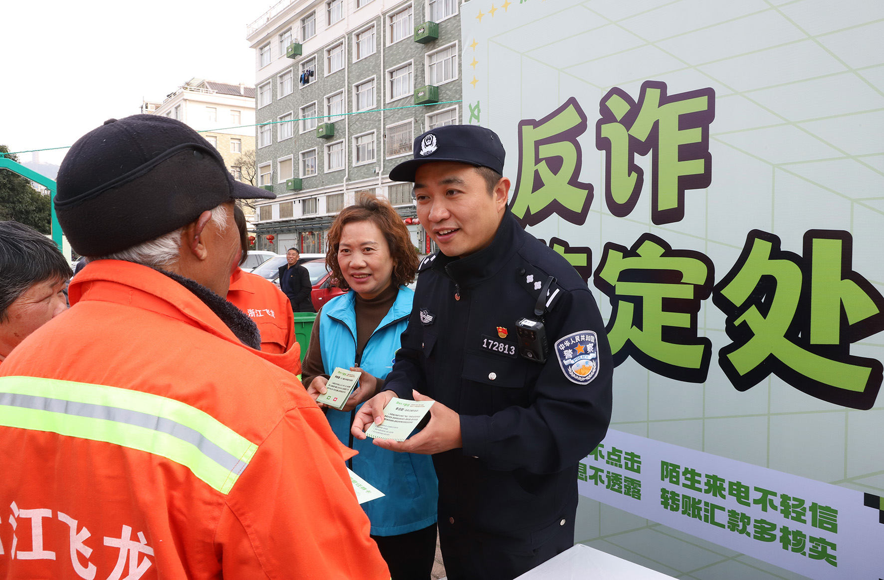3月9日,浙江省臺(tái)州市路橋區(qū)螺洋派出所民警和網(wǎng)格員通過現(xiàn)場(chǎng)互動(dòng)形式向群眾宣傳反詐騙知識(shí)。