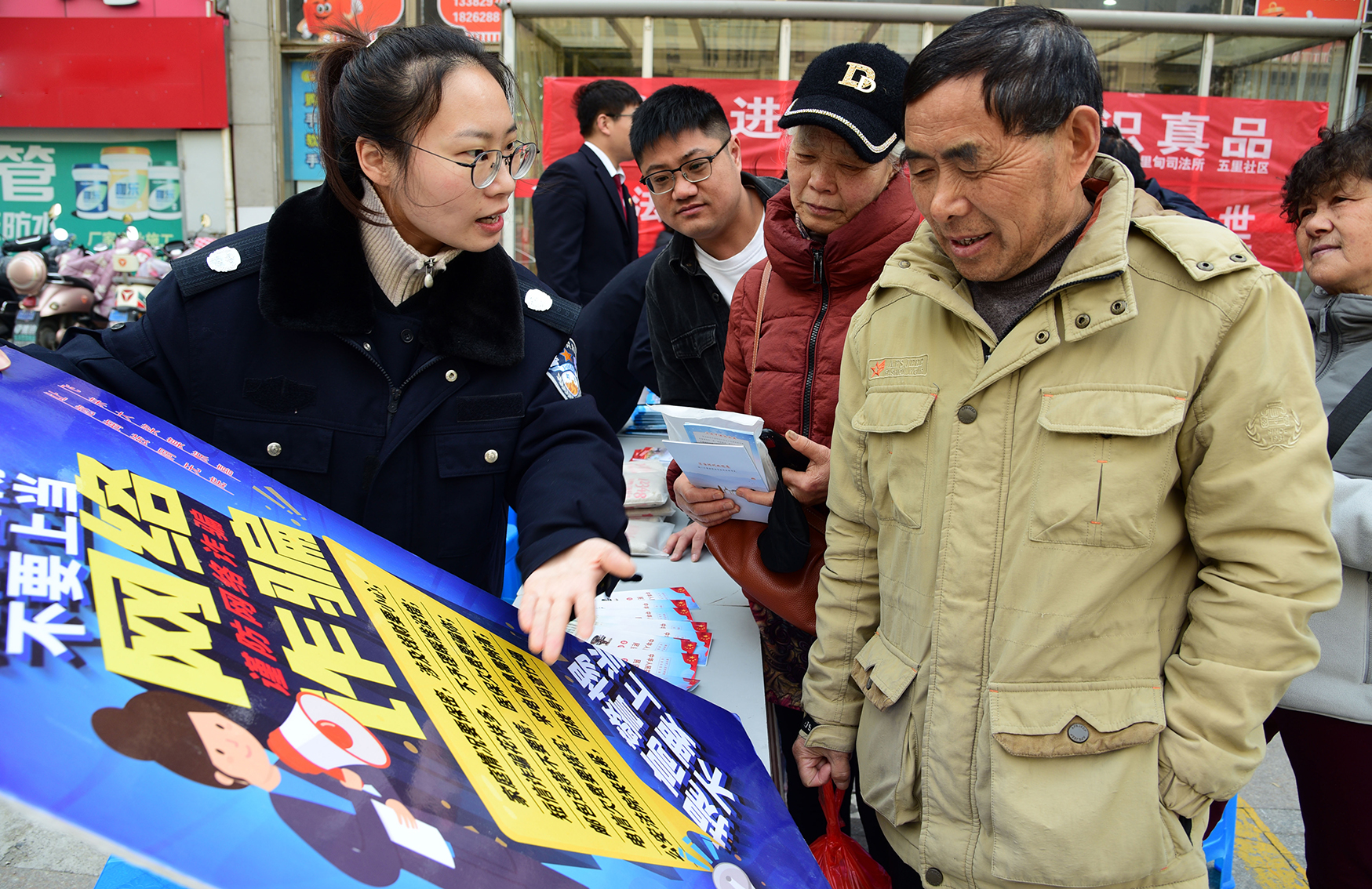 圖為司法所工作人員向市民宣講消費維權(quán)和反詐知識。