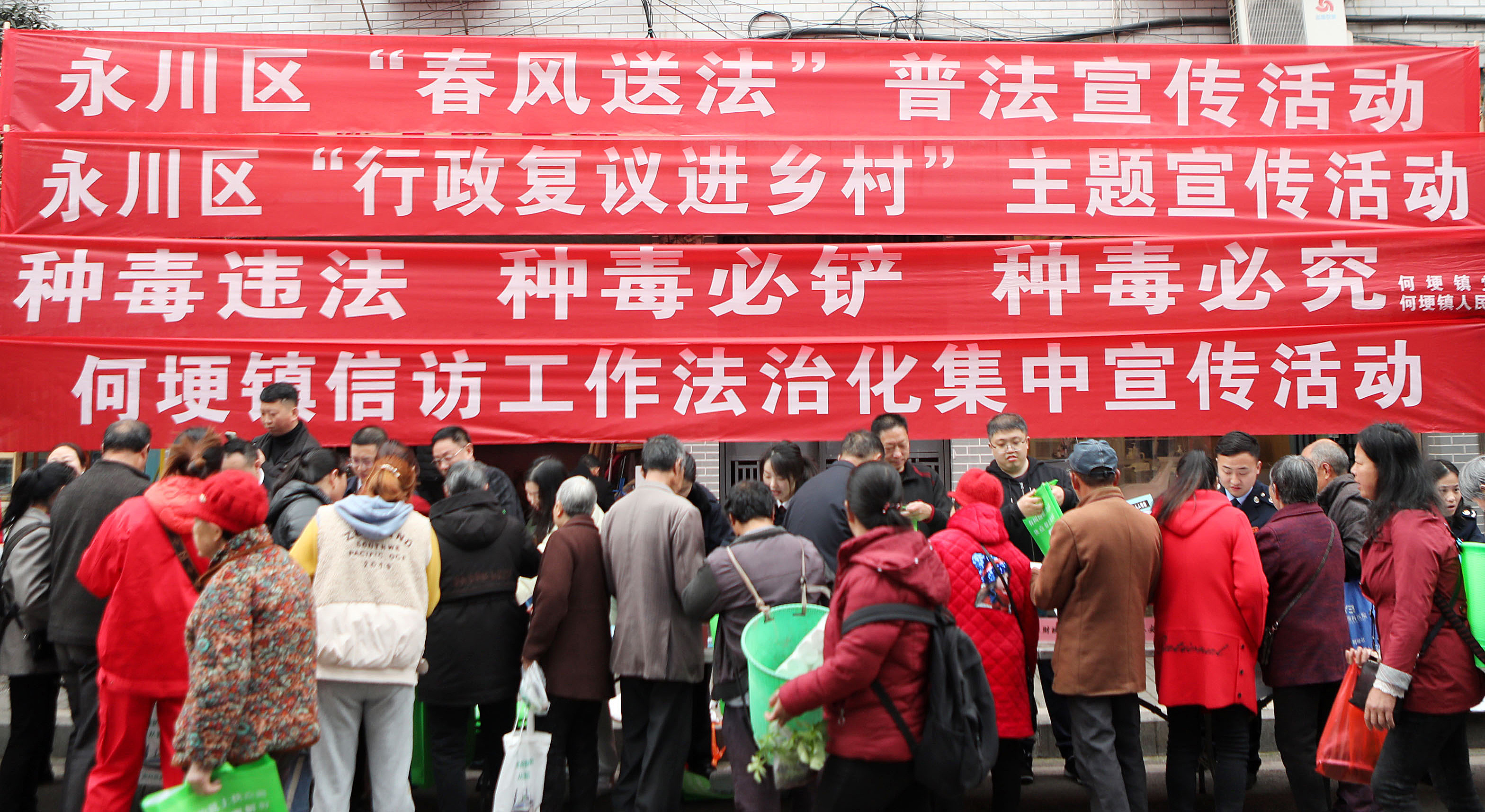 3月13日,重慶市永川區(qū)普法辦會同區(qū)委政法委、區(qū)法院、區(qū)檢察院、區(qū)公安局、區(qū)司法局、區(qū)農(nóng)業(yè)農(nóng)村委等12家單位,走進(jìn)何埂鎮(zhèn)開展“春風(fēng)送法 催耕護(hù)種”法治宣傳活動。