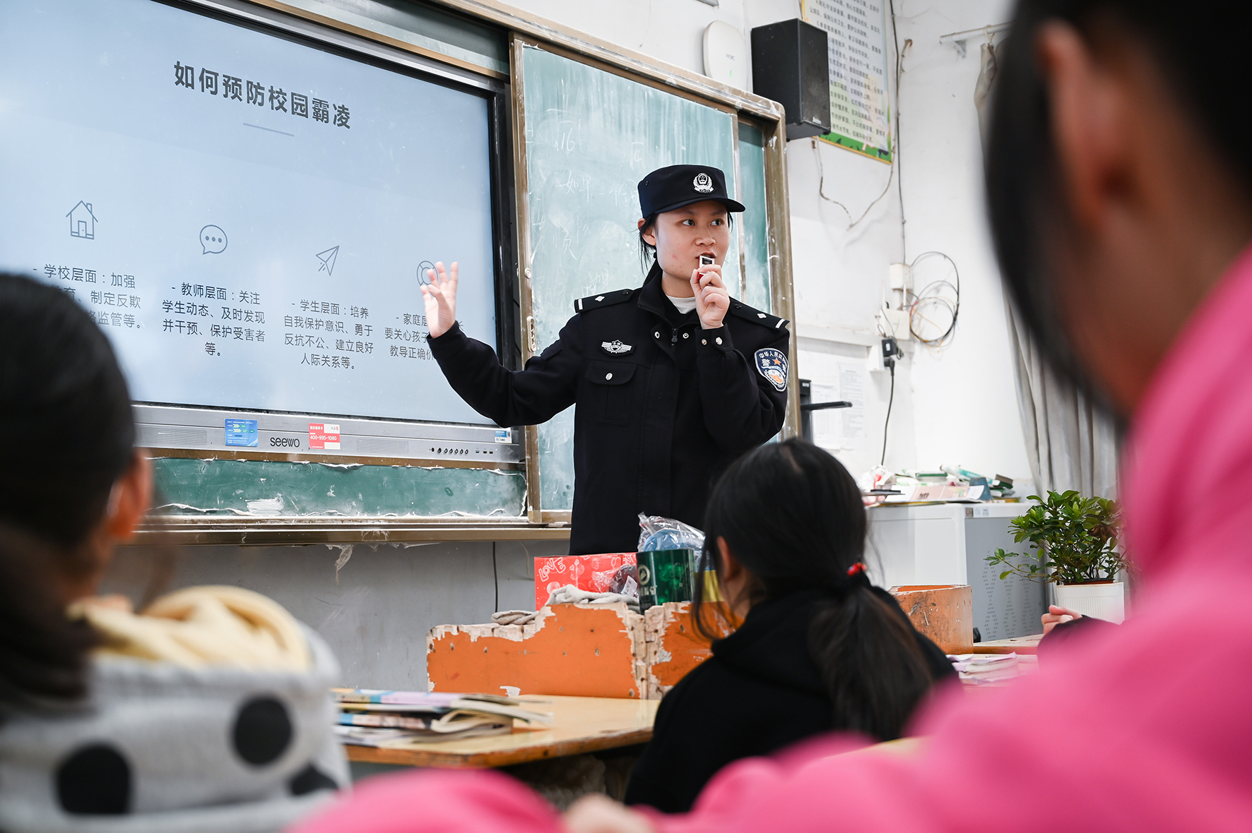 3月15日,安徽省馬鞍山市和縣公安局民警在石楊中學(xué)開(kāi)展“拒絕校園霸凌”主題法治宣講,引導(dǎo)青少年樹(shù)立正確的人生觀和價(jià)值觀。