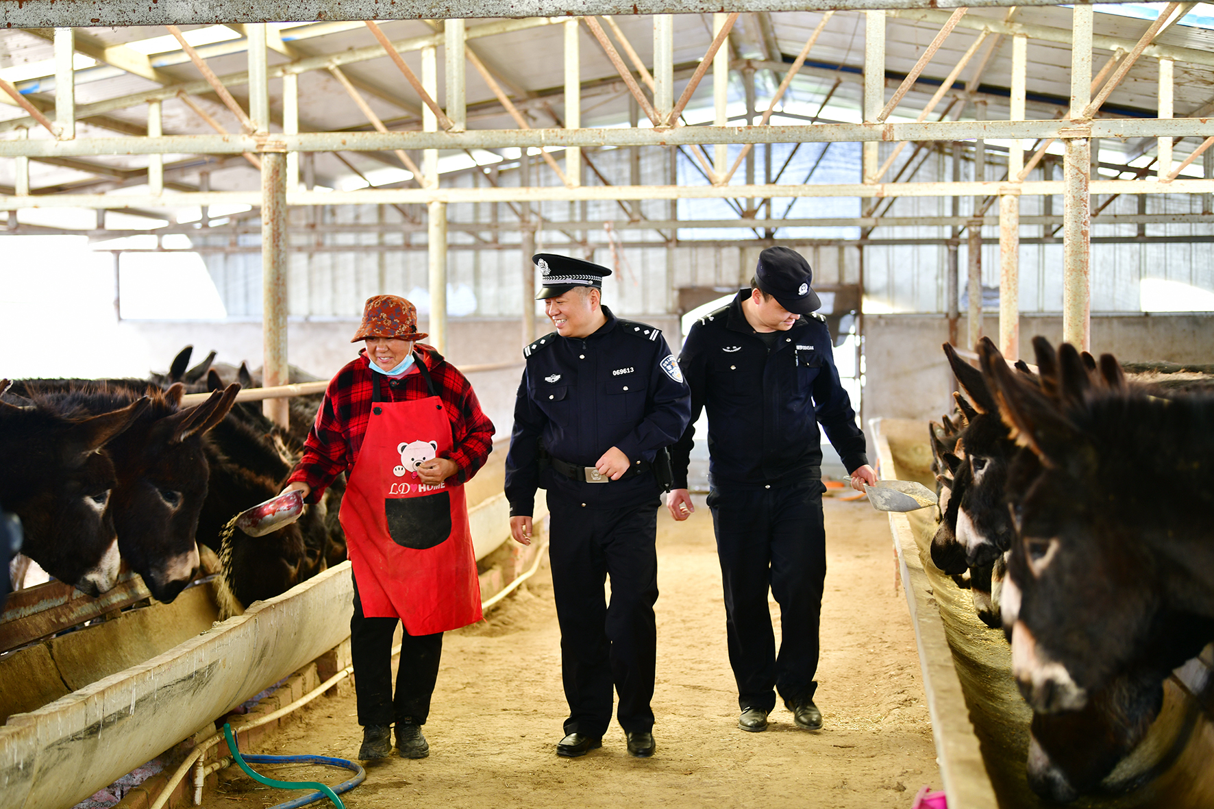 3月21日,安徽省阜南縣焦陂鎮(zhèn)派出所民輔警在一養(yǎng)殖場(chǎng)詢問治安和經(jīng)濟(jì)發(fā)展情況。阜南縣公安局焦陂派出所組織民輔警走進(jìn)村辦種植養(yǎng)殖企業(yè),開展“訪企情、解企憂、化矛盾、防風(fēng)險(xiǎn)、護(hù)發(fā)展”活動(dòng),為企業(yè)排憂解難,守護(hù)經(jīng)營(yíng)企業(yè)的合法權(quán)益。