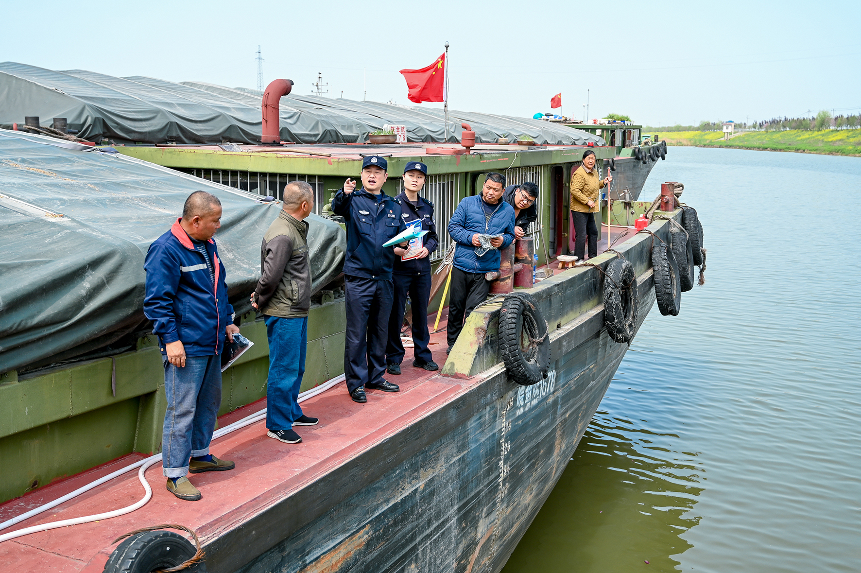 “勸君不吃四月魚,萬千魚仔在腹中”。3月31日,安徽省馬鞍山市和縣公安局石楊派出所民警向停泊在滁河水域的船主宣傳長江、滁河等水域禁漁政策,倡導廣大船員主動參與長江生態(tài)環(huán)境保護,莫讓“漁網(wǎng)”觸“法網(wǎng)”。