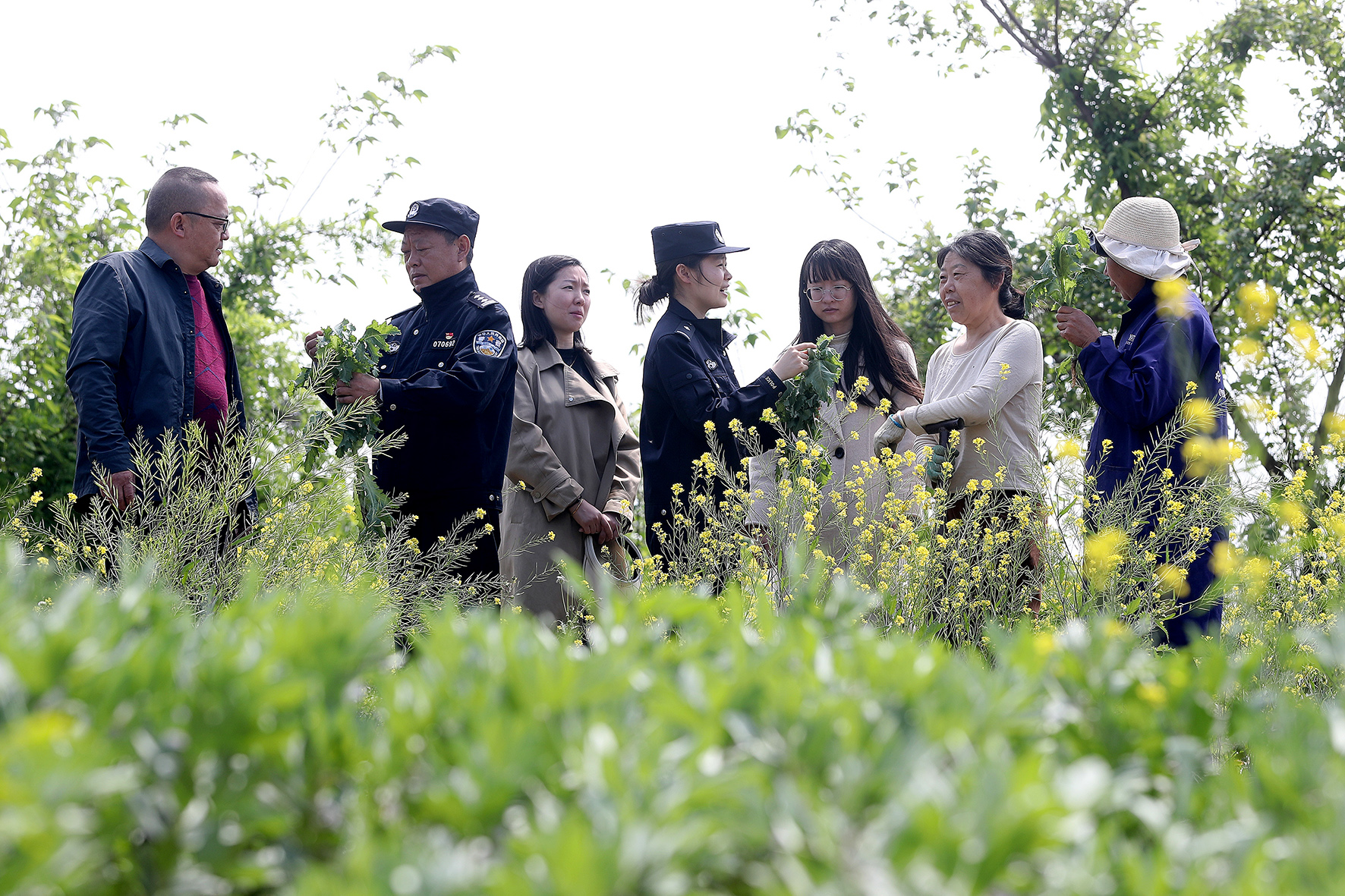 4月8日,湖北省荊門市公安局東寶分局泉口派出所民警拿著剛鏟除的罌粟苗,通過“現(xiàn)場說法”的方式,向村民宣傳毒品植物的基本特征及種植毒品原植物所承擔(dān)的法律責(zé)任。