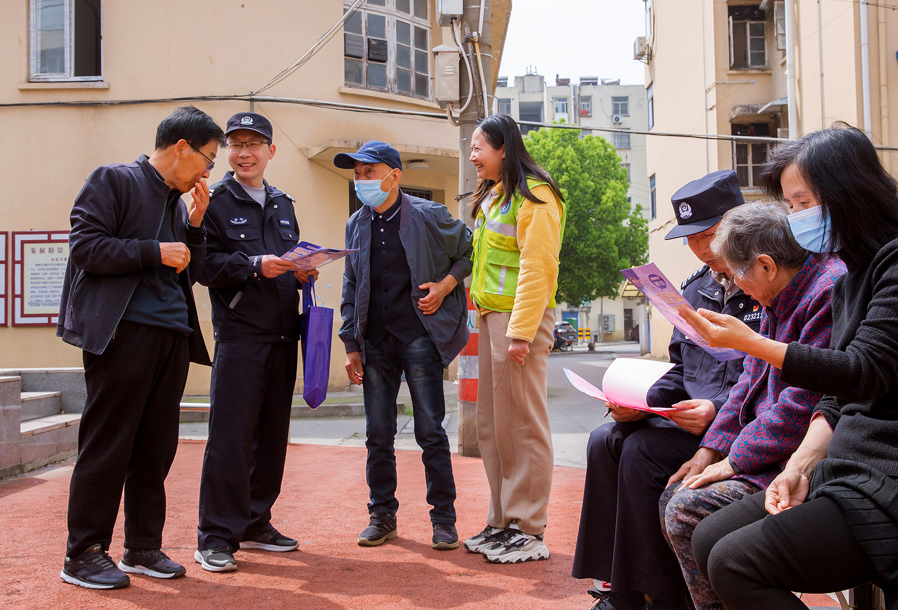 4月11日,山東省棗莊市公安局薛城分局鳳鳴湖派出所民輔警在轄區(qū)高樓社區(qū)全民國(guó)家安全教育日宣傳活動(dòng)。