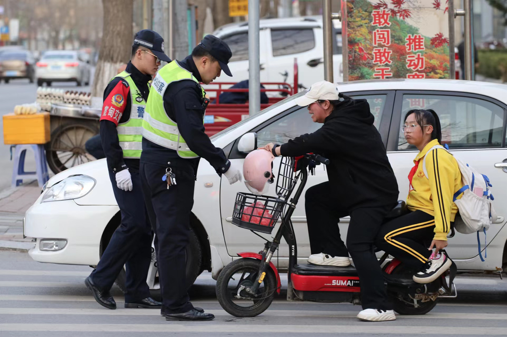 4月17日,遼寧省寬甸滿族自治縣公安局交通警察大隊(duì)組織民輔警,在城區(qū)開展對(duì)電動(dòng)自行車超速、不遵守交通信號(hào)、逆行、走機(jī)動(dòng)車道、不佩戴頭盔等違章行為的查處。