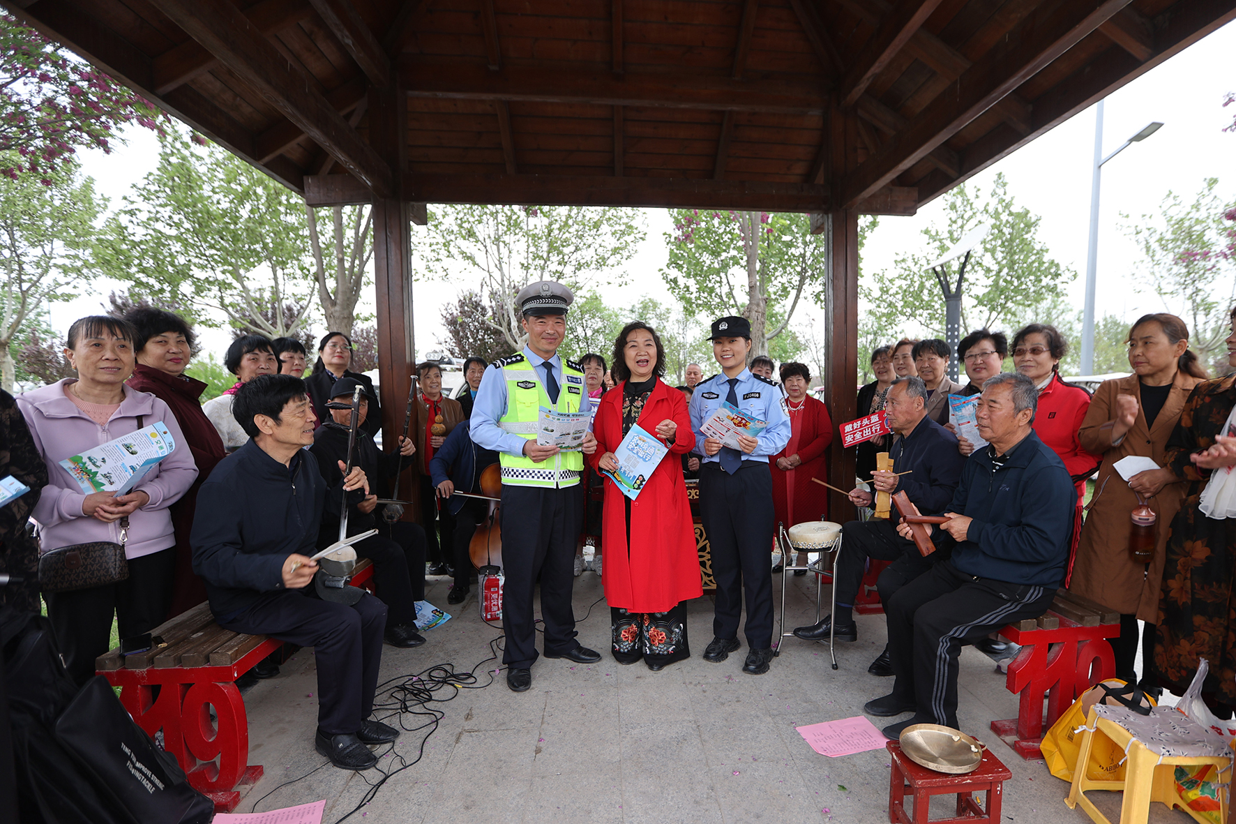 4月19日,陜西省大荔縣公安局交警大隊(duì)民警、禁毒大隊(duì)民警攜手,借助老年大學(xué)“自樂班”演出陣地開展交通安全和禁毒宣傳。